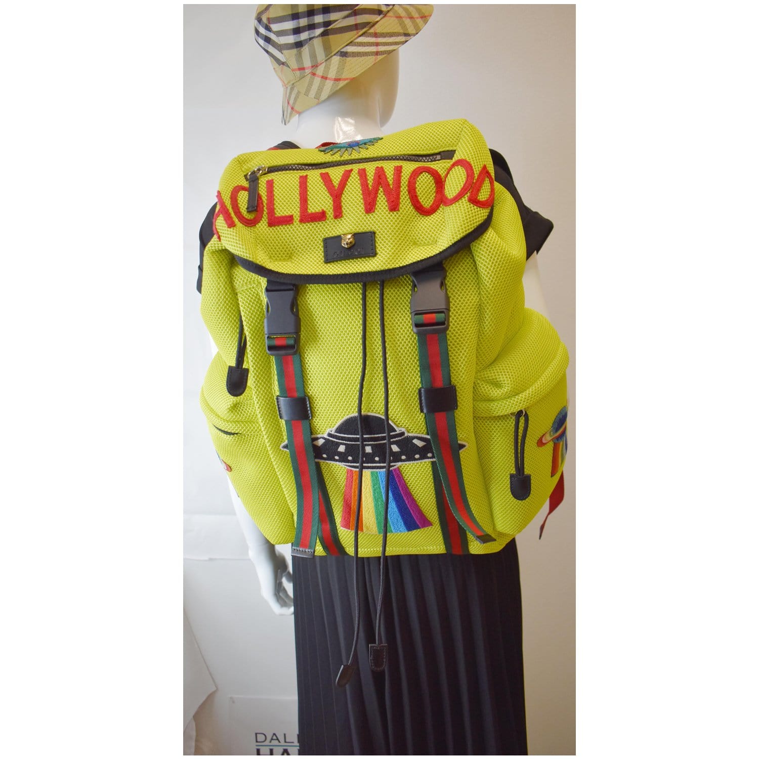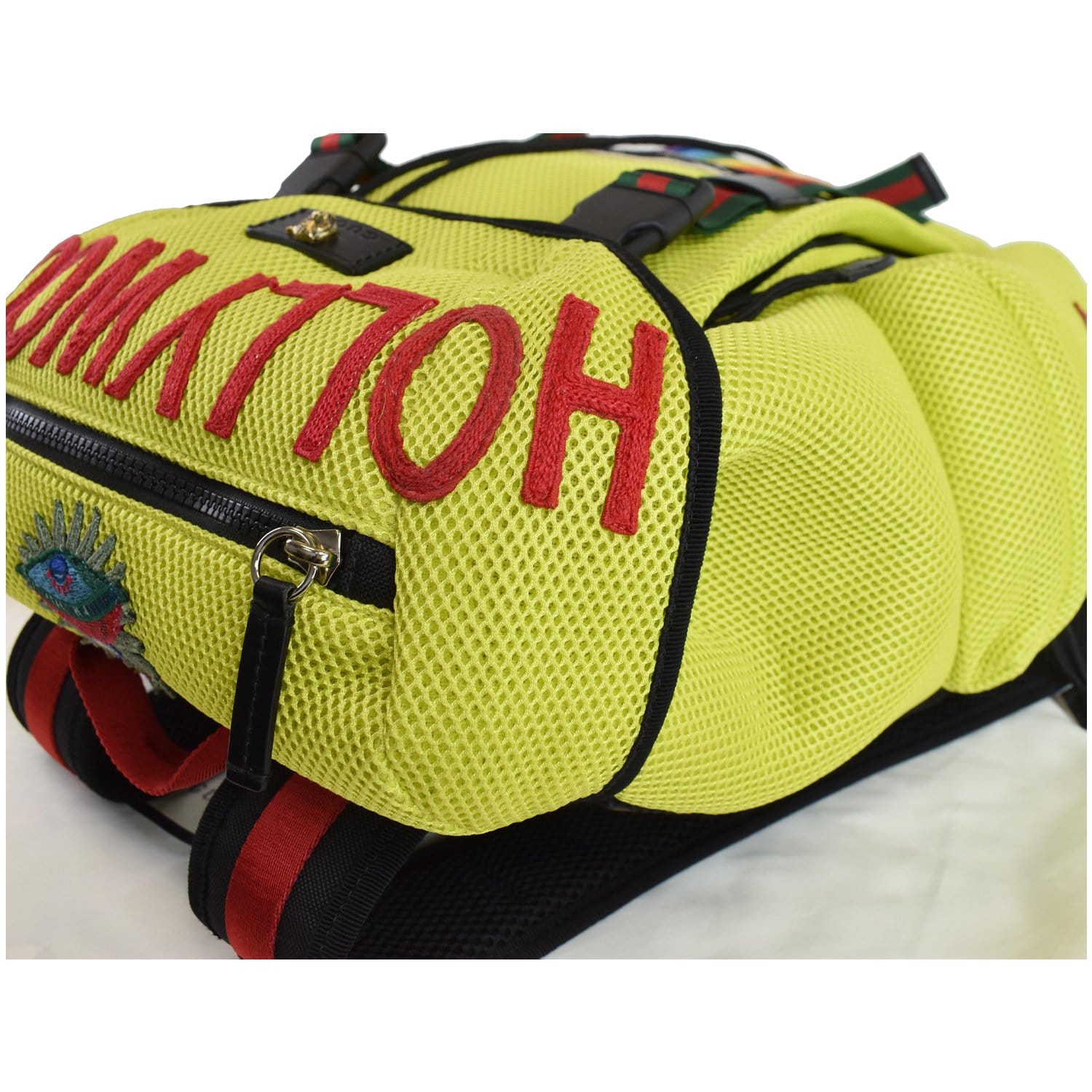 GUCCI Techpack Hollywood Embroidery Mesh Fabric Backpack Bag Lime 429037