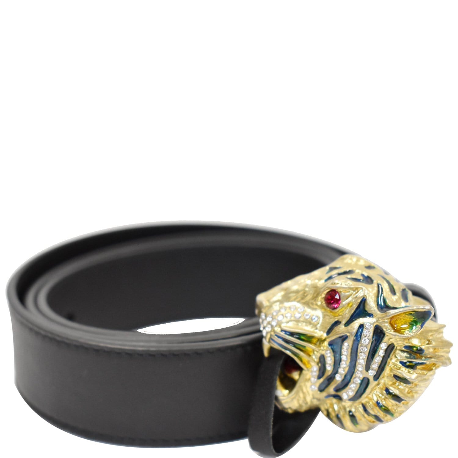 Gucci Tiger Head Leather Belt Black Size 85/34