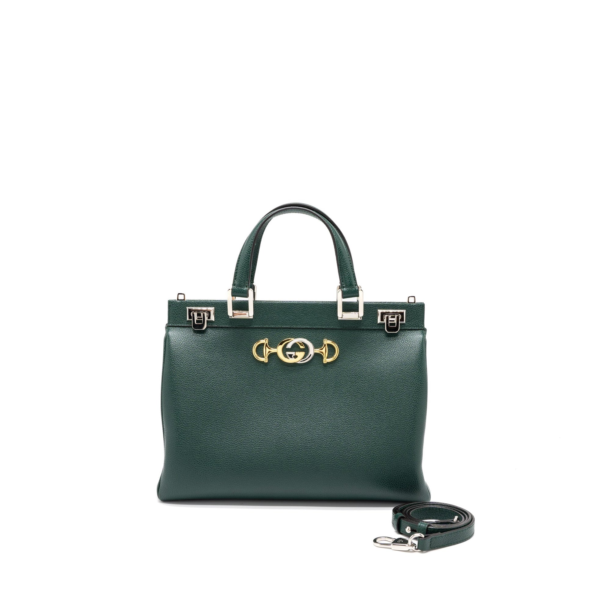 Gucci Top Handle Zumi Bag Calfskin Green Multicolour Hardware