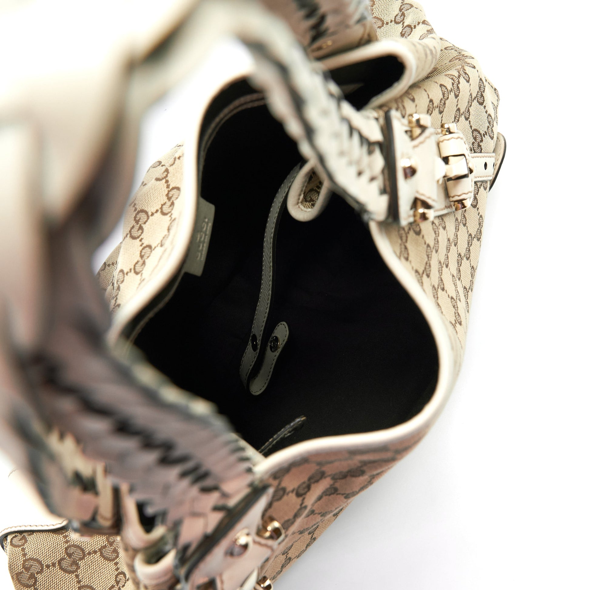 Gently (This item is in very good condition with minor rubbing on corners, slight scratches on hardware, slight rubbing on edges of handle.)