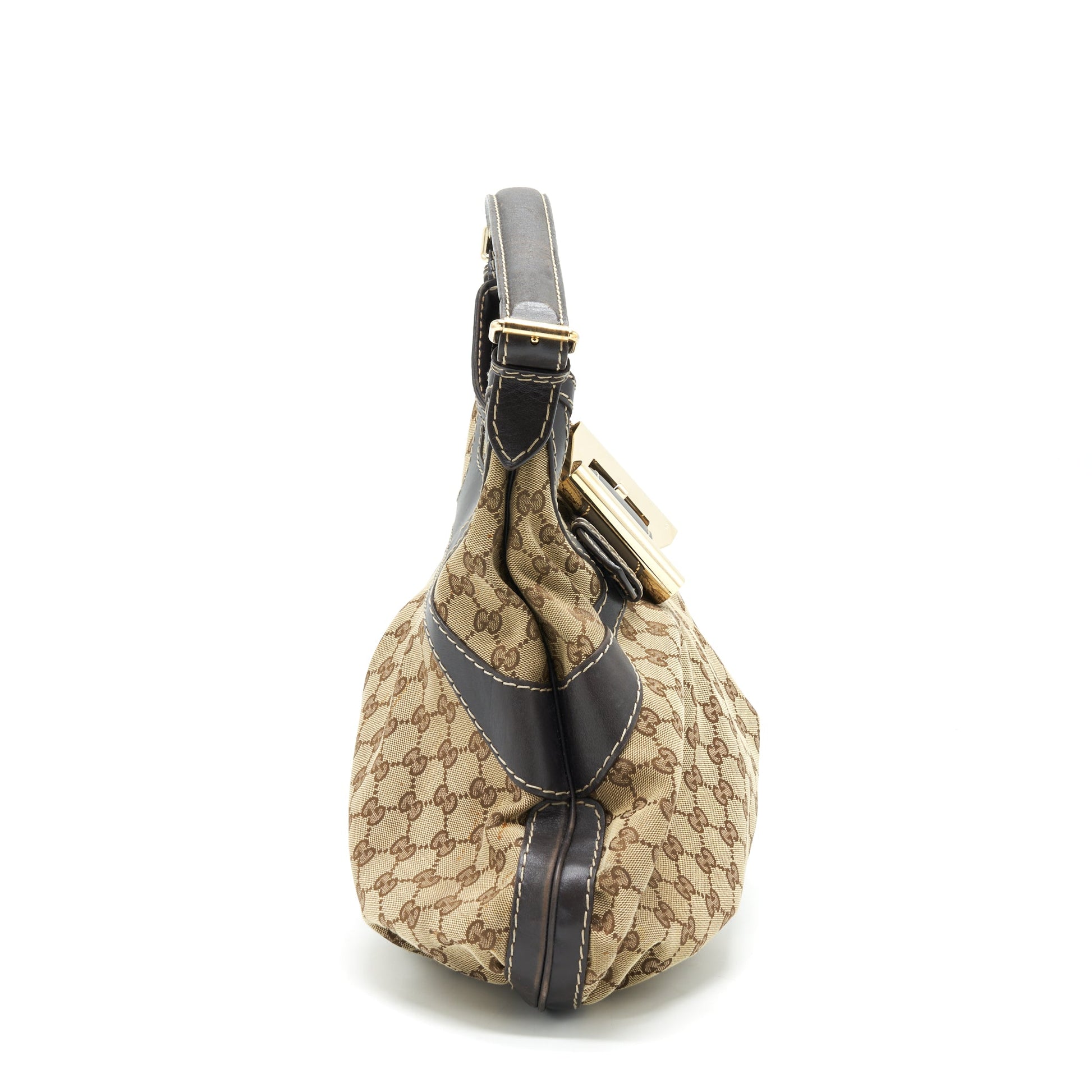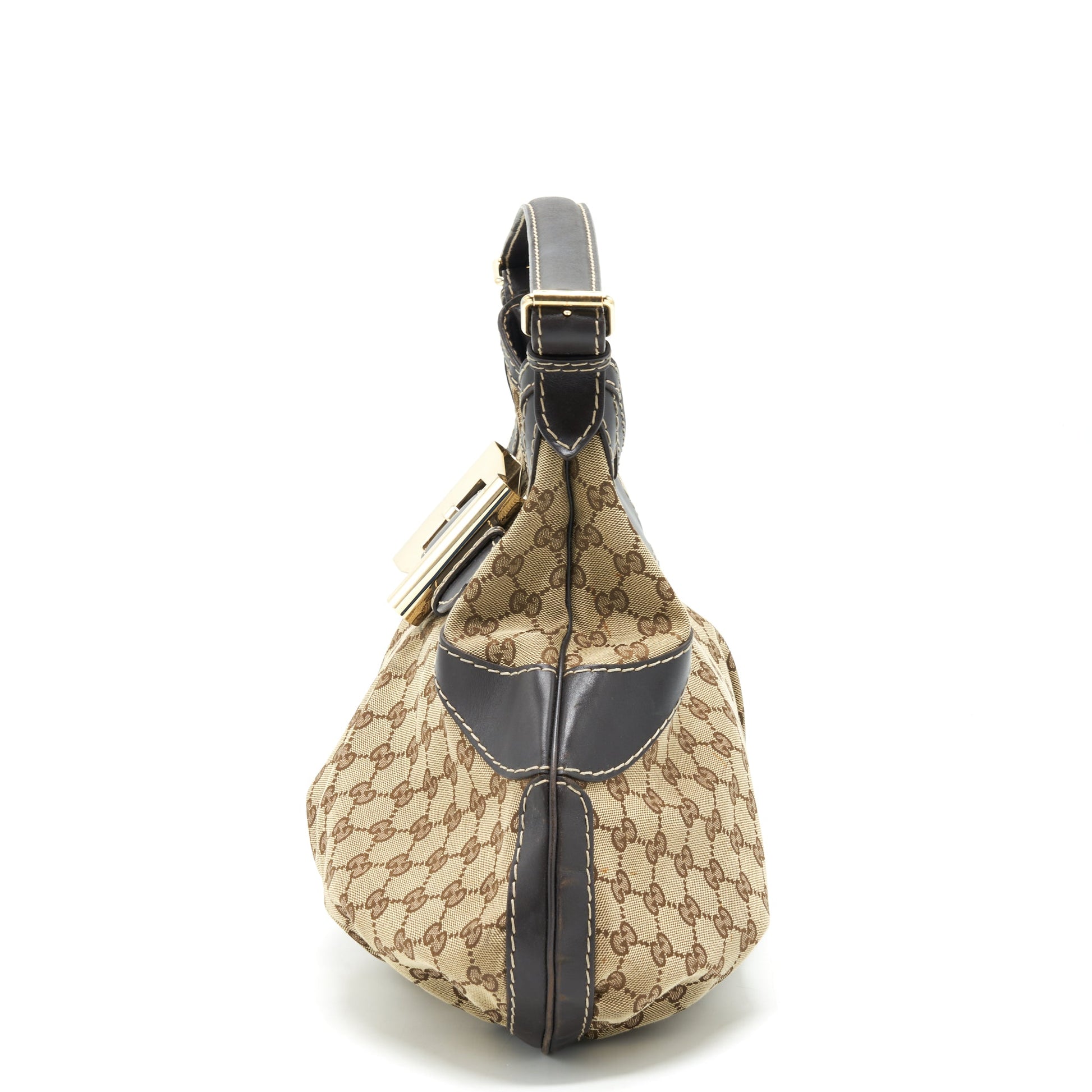 (This item is in fair condition with scratches on hardware and leather, rubbing on edges and corners, obvious rubbing on handle strap, sign of use inside.)