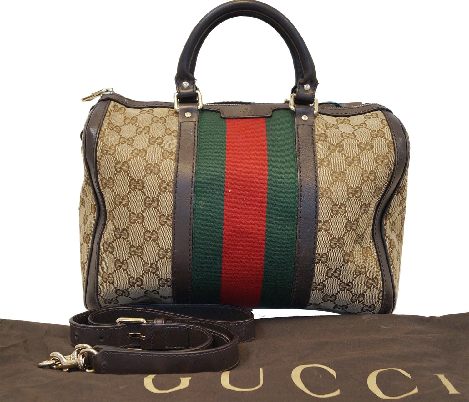 GUCCI Vintage Web Medium Original GG Boston Bag with Signature Web
