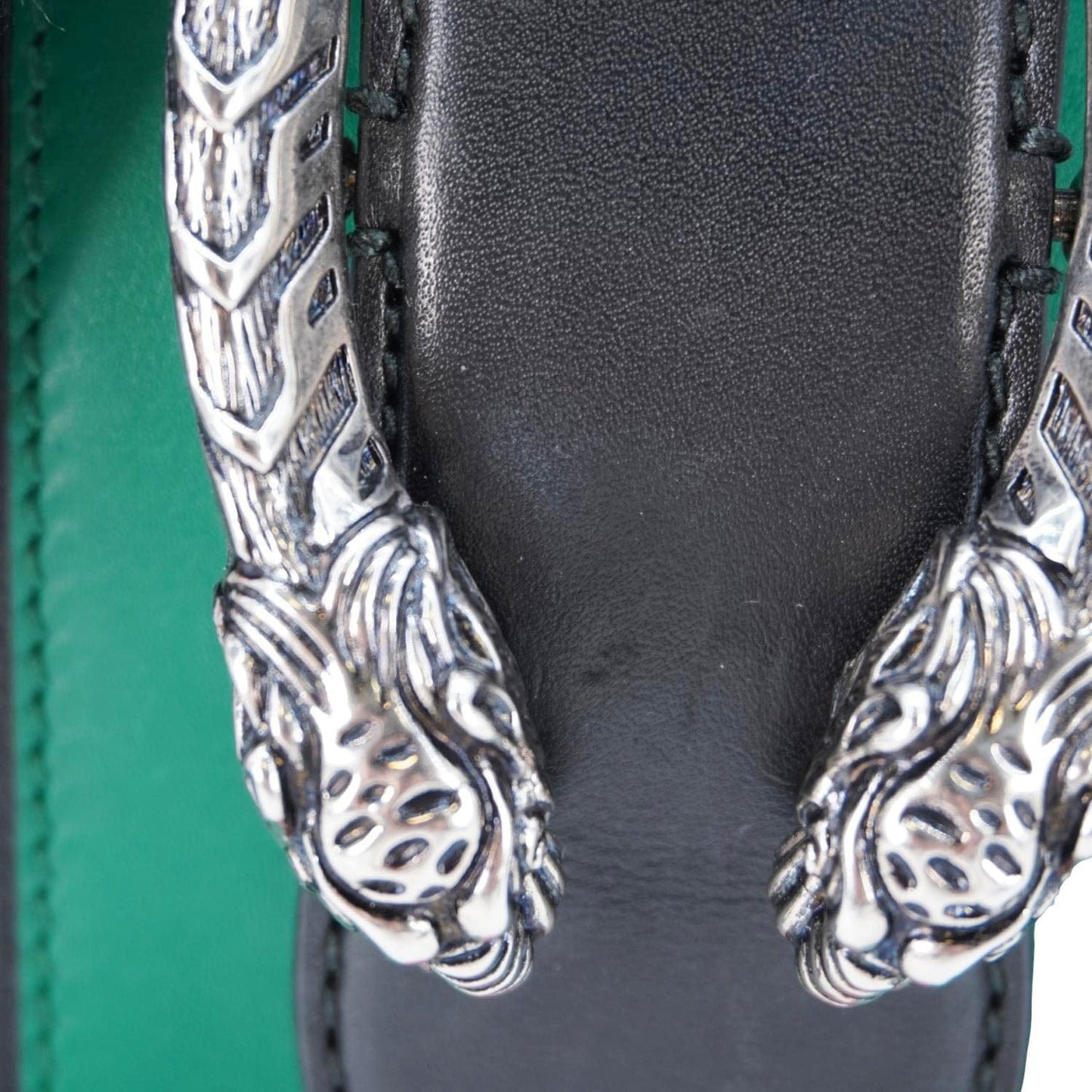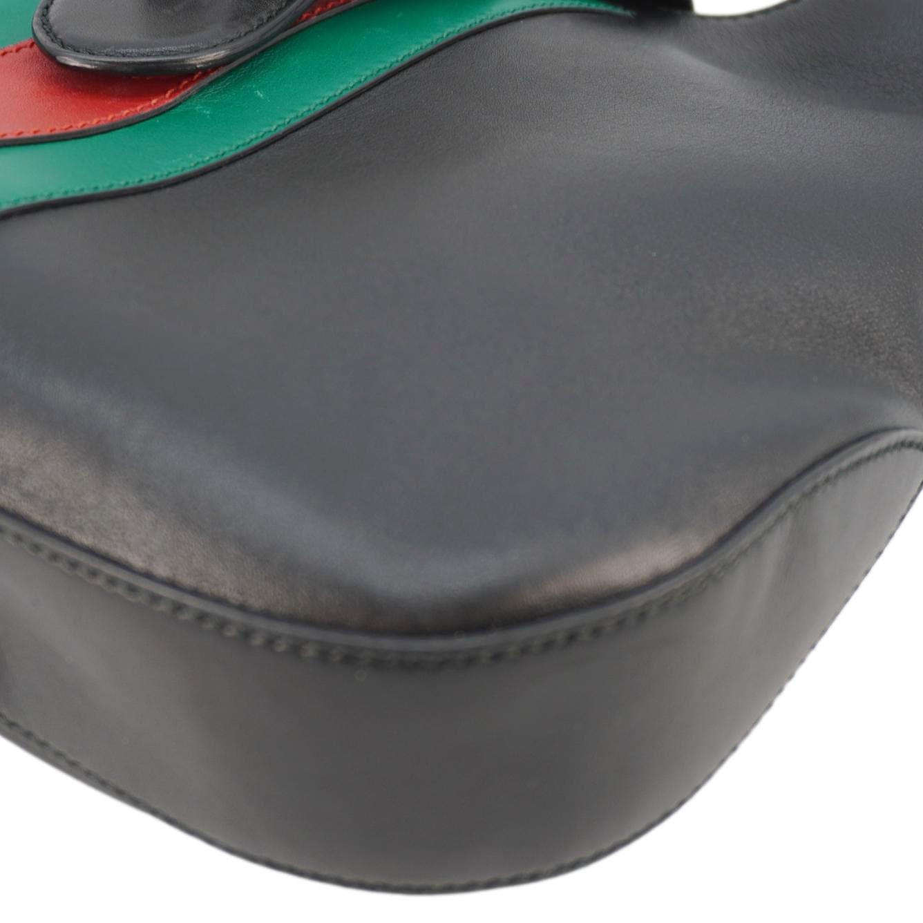The Gucci Dionysus Medium Web Leather Hobo Bag in black is a statement of elegance and style. Featuring the iconic tiger head closure, green and red web detailing, and a roomy interior, it’s perfect for both day and evening wear.