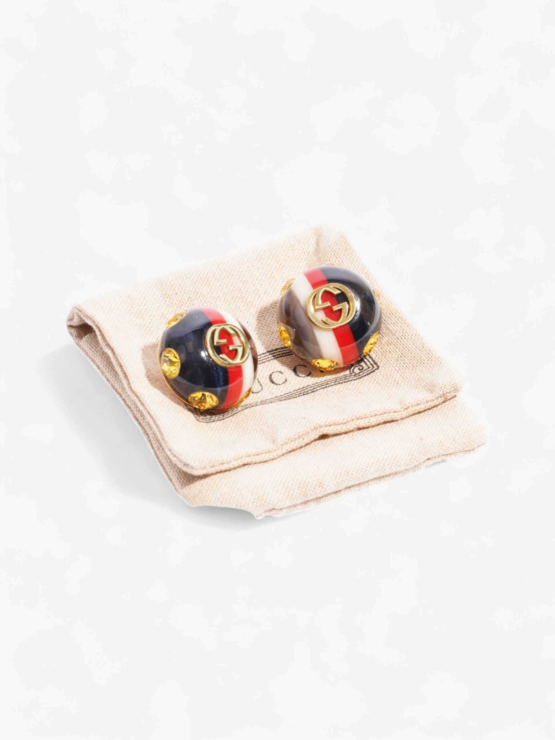 Gucci Web Stud Earrings Gold / Yellow / Blue Resin