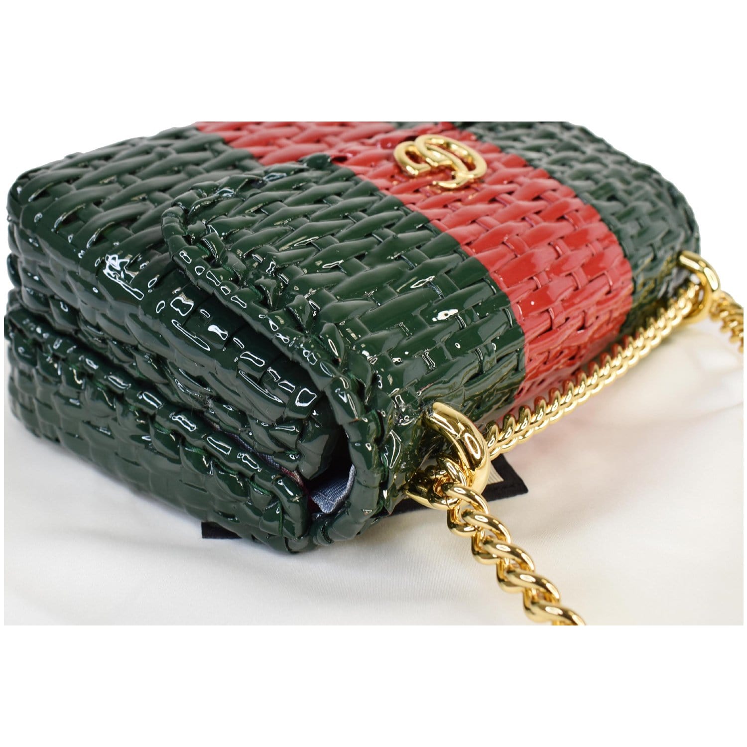GUCCI Wicker Linea Cestino Mini Web Shoulder Bag Green 524829