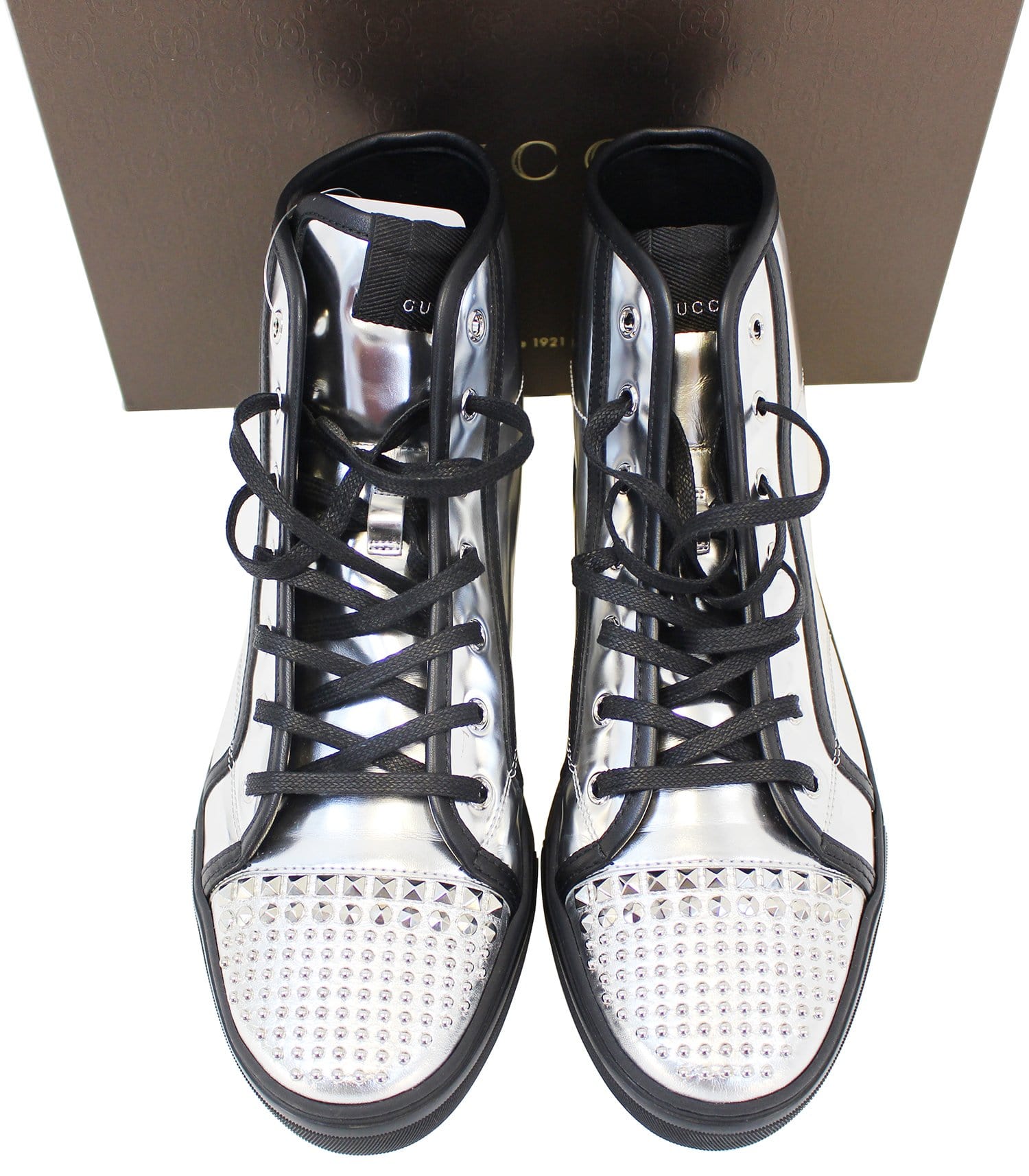 GUCCI Womens Metallic Leather High Top Studs Sneakers Size 41 G US 11.5 370875