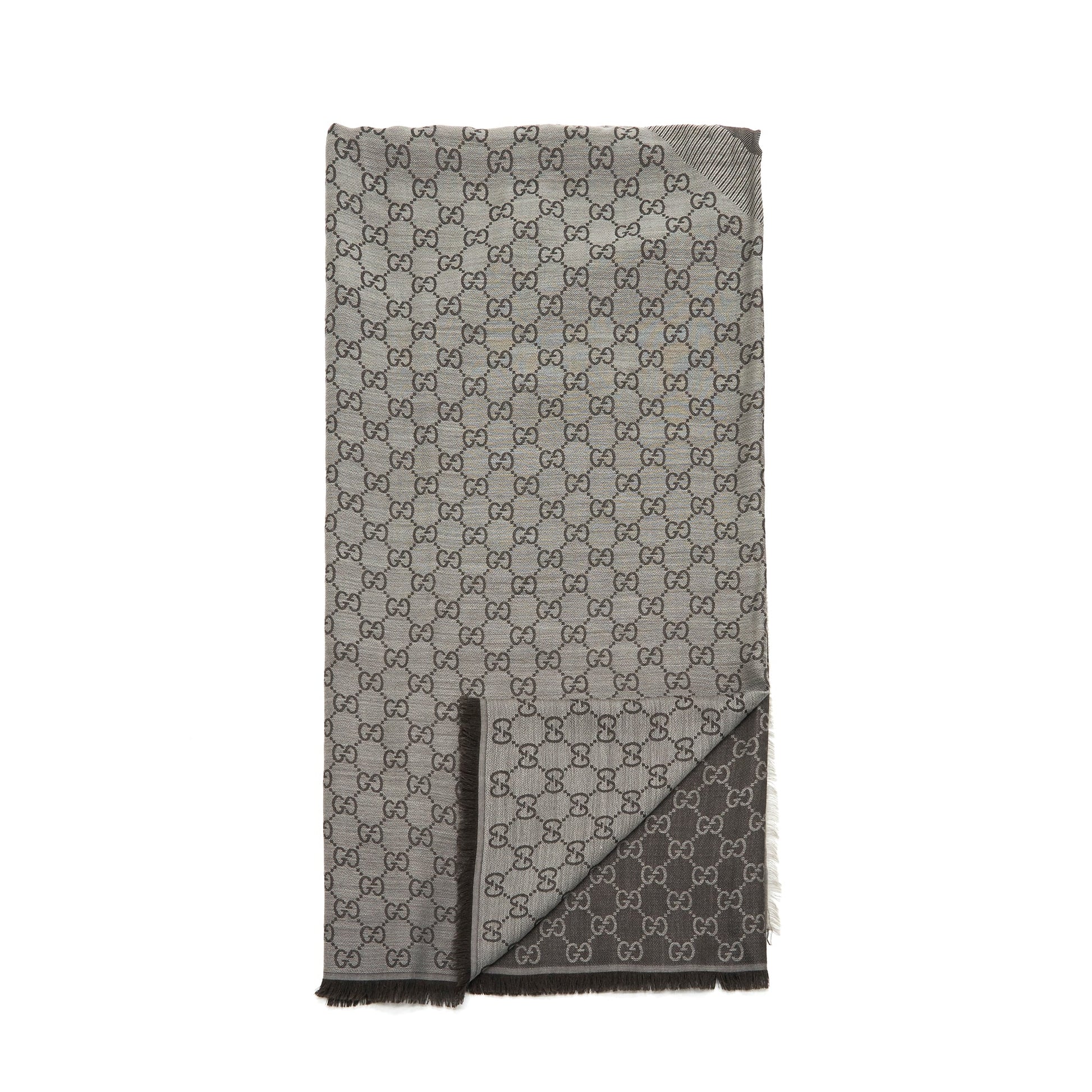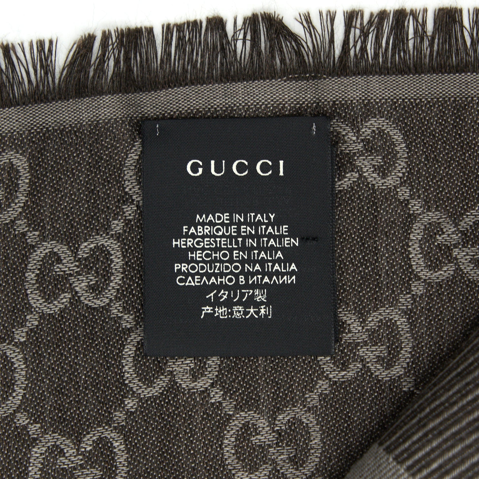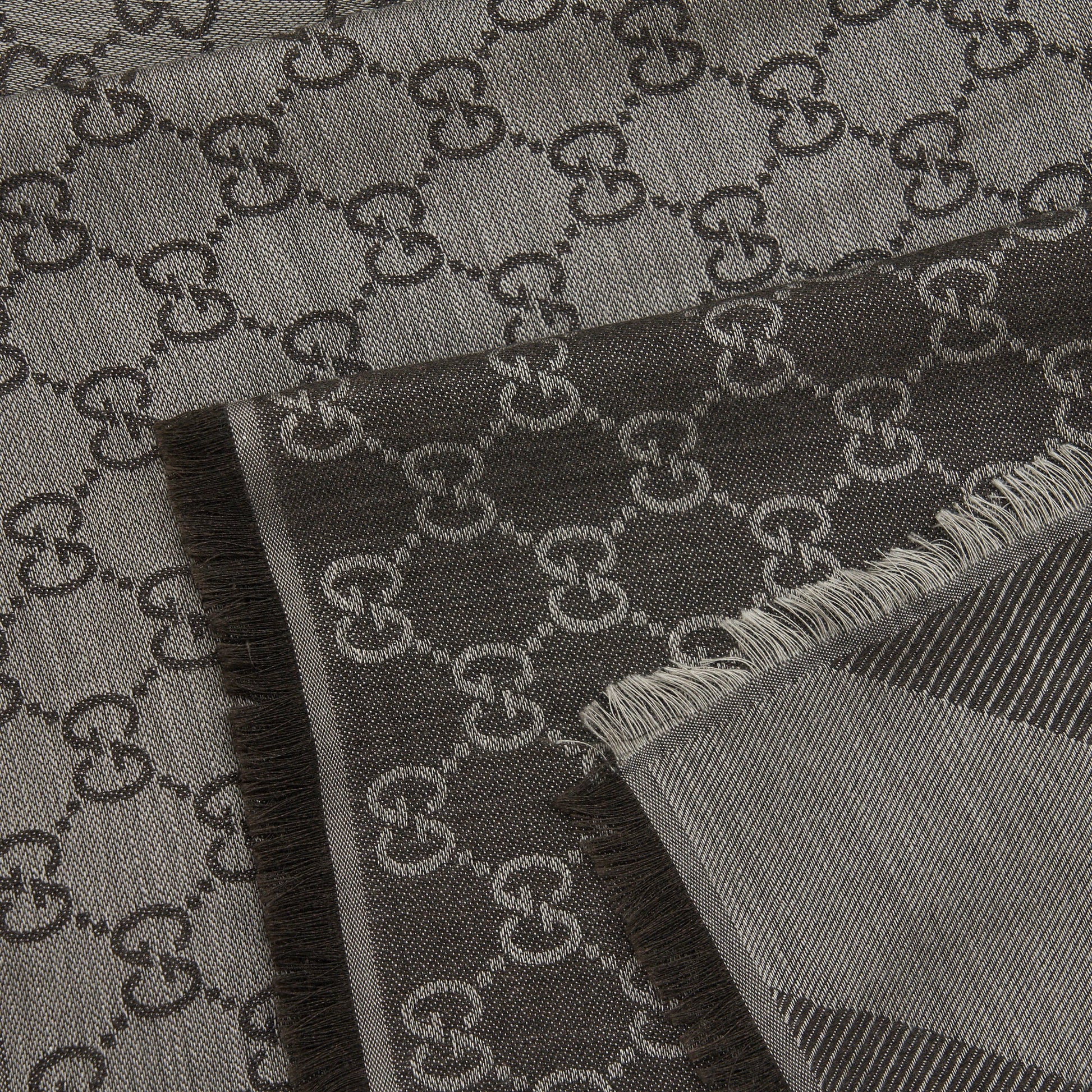 GUCCI Wool Jacquard GG Logo Scarf Dark Brown 140x140cm