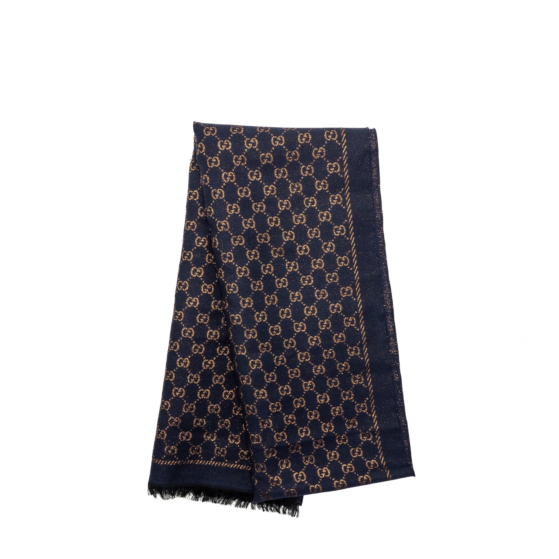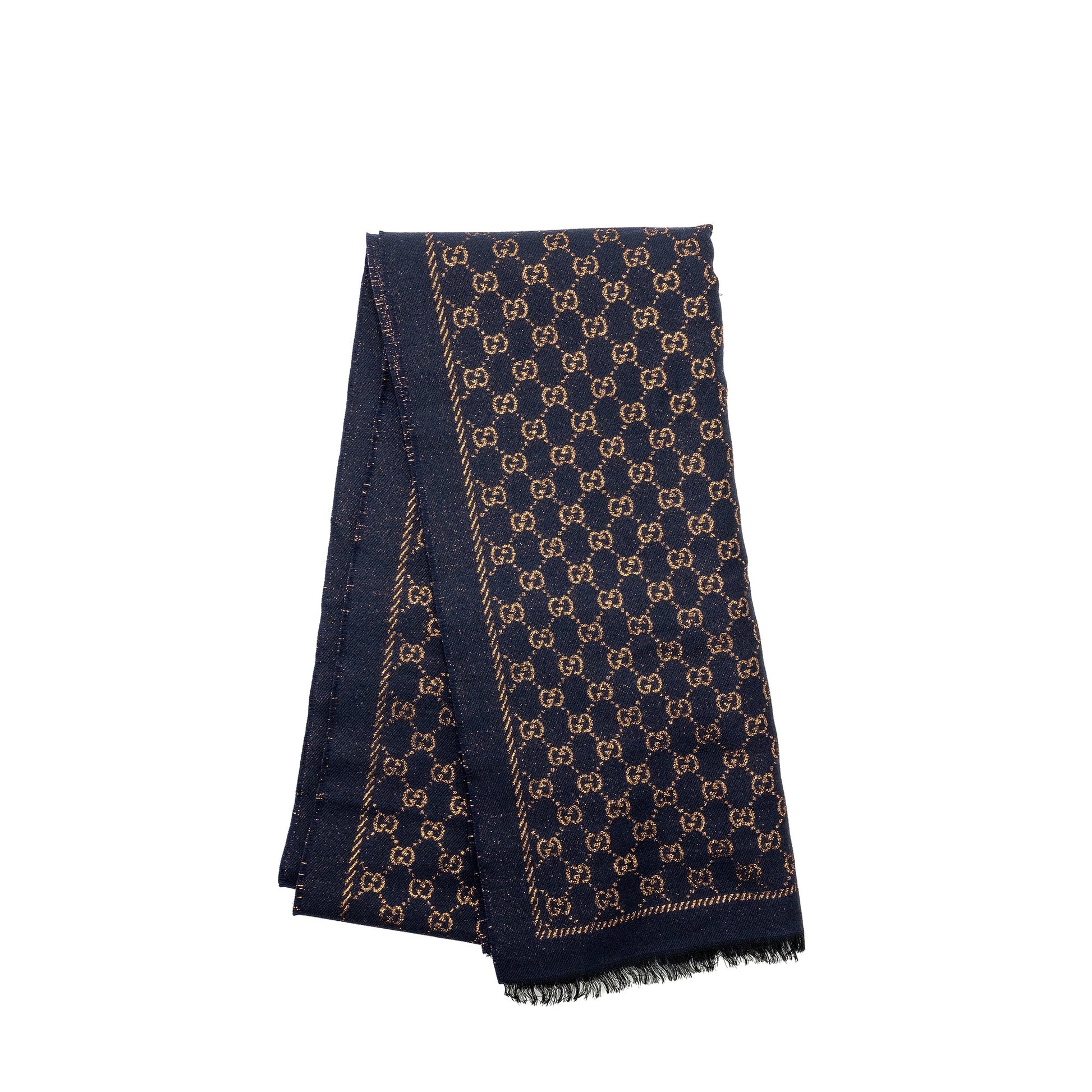 Gucci Wool Scarf GG Supreme Navy/Gold