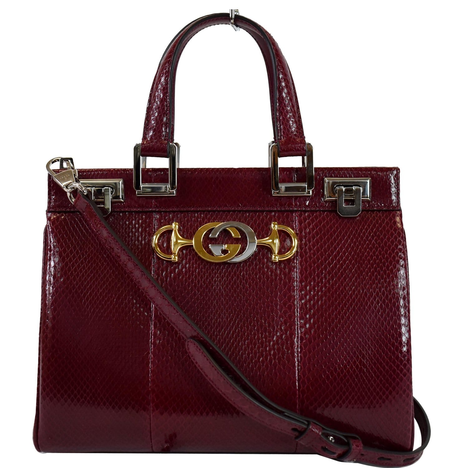 GUCCI Zumi Small Snakeskin Leather Top Handle Bag Bordeaux 569712