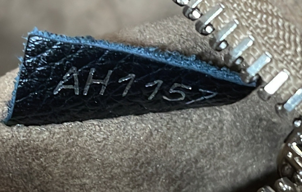 Condition: Good. Odor in interior. Creasing, minor wear and light scuffs on exterior and strap, cracking on side opening wax edges. Minor wear, small marks and pen marks in interior, scratches and slight tarnish on hardware.