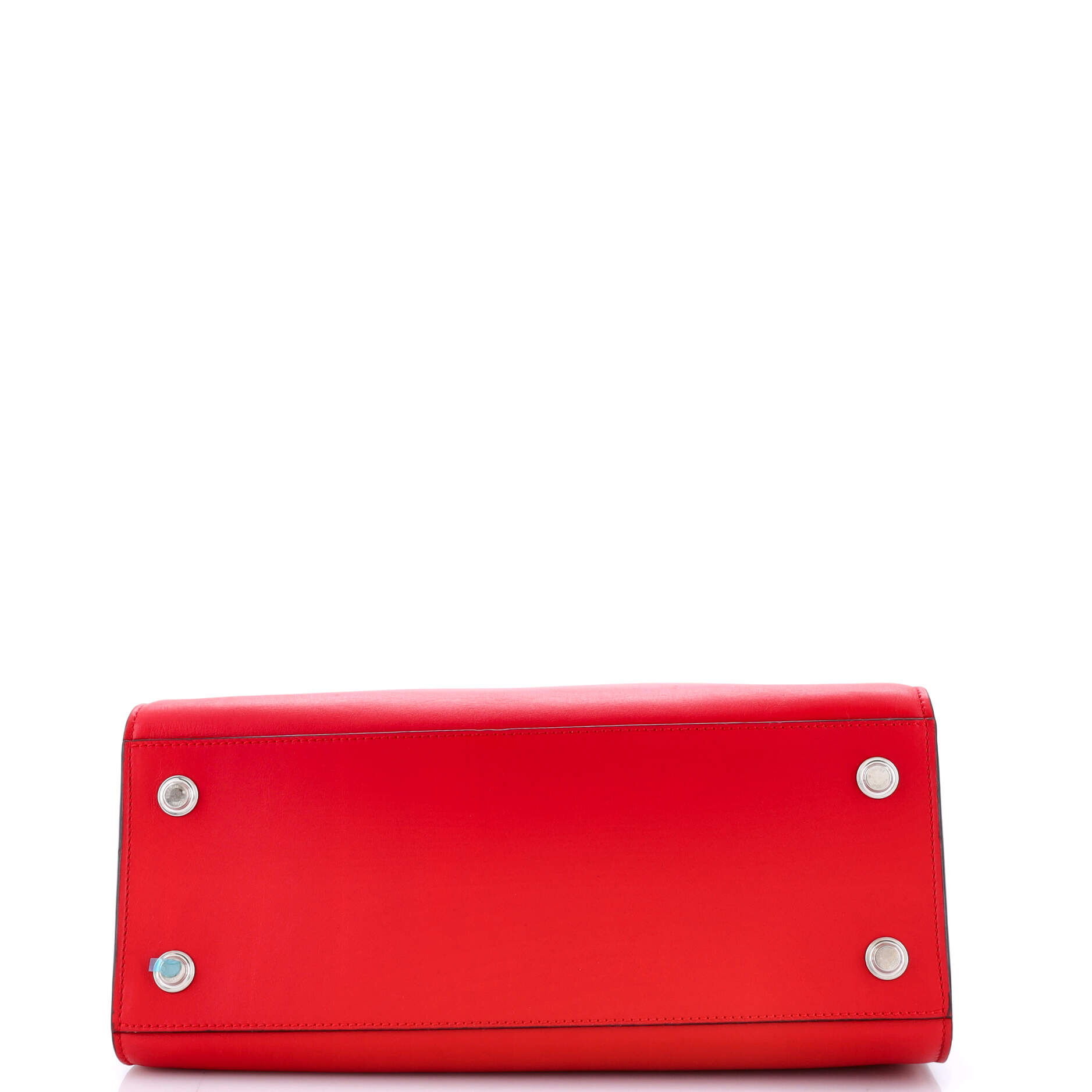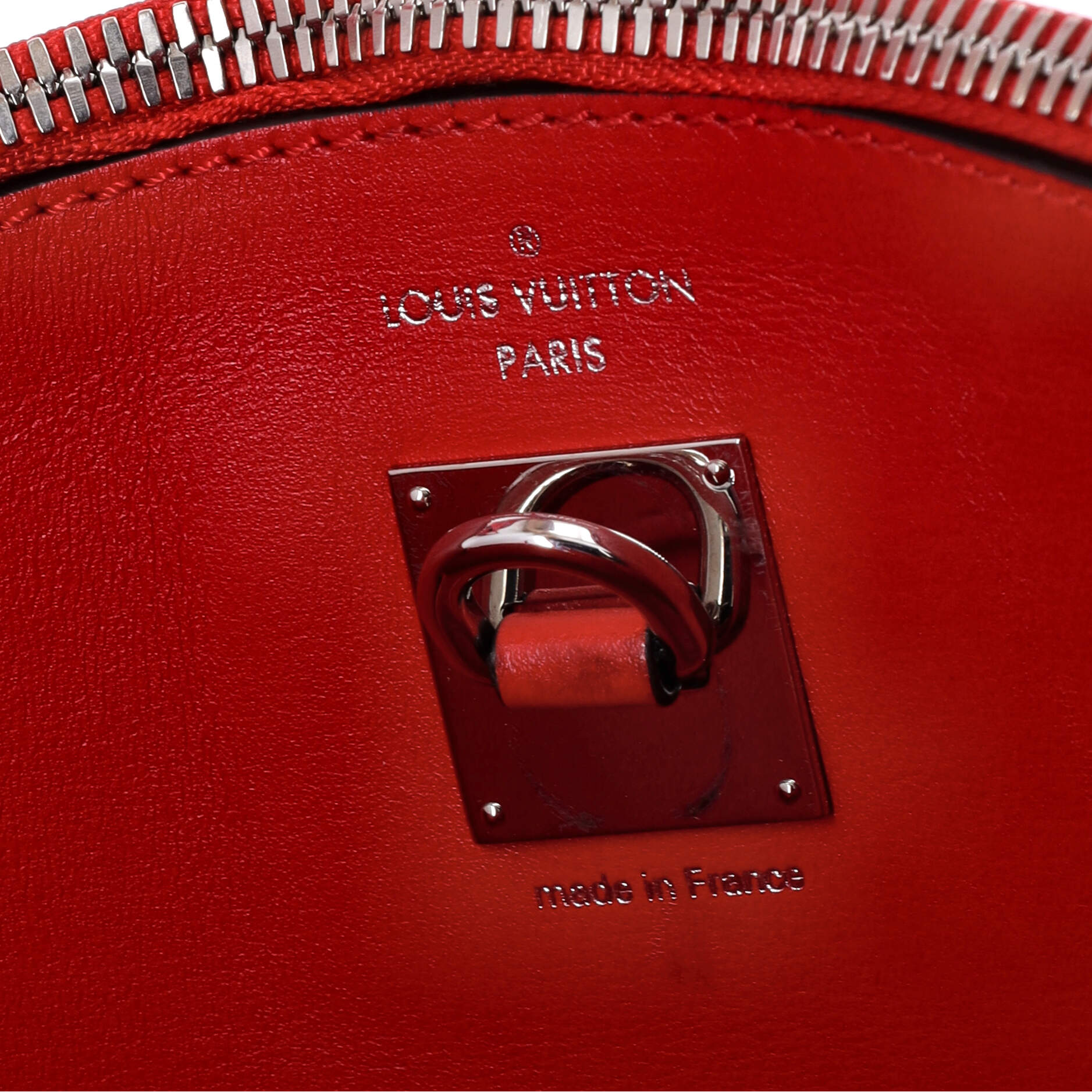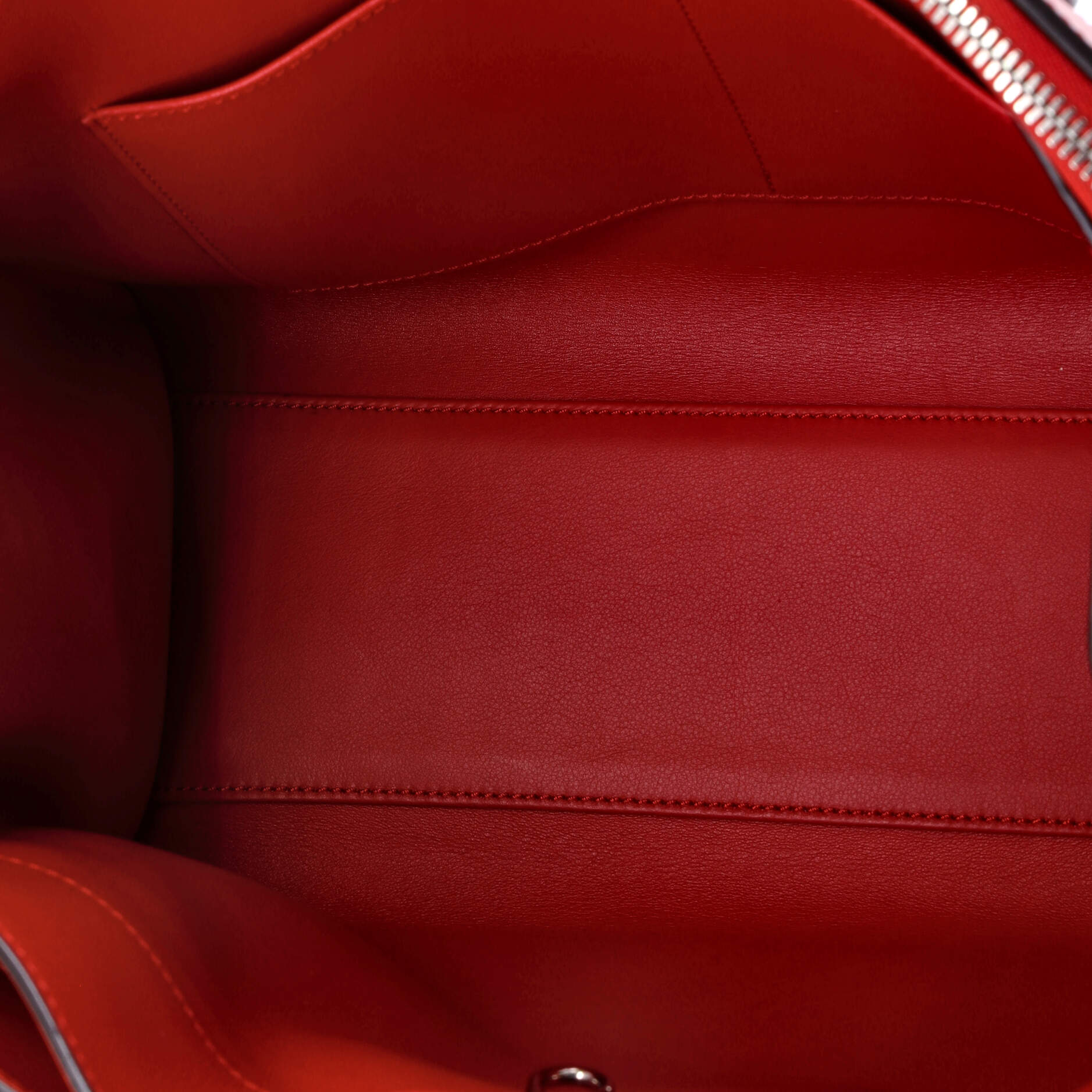 Condition: Very good. Minor odor in interior. Creasing, wear, scuffs and indentations on exterior, handles, strap and in interior, minor cracking on side opening wax edges. Peeling and indentations on handle wax edges,