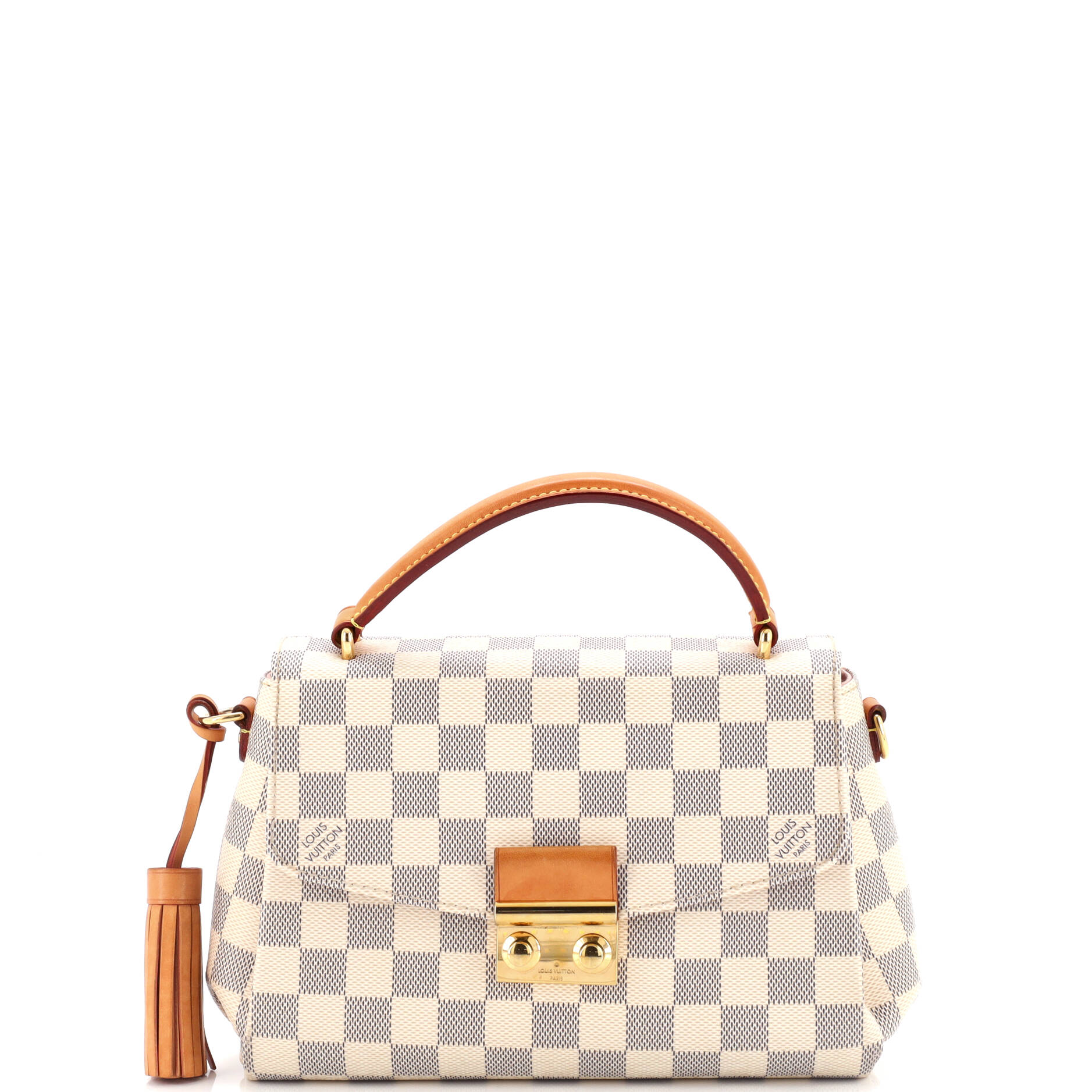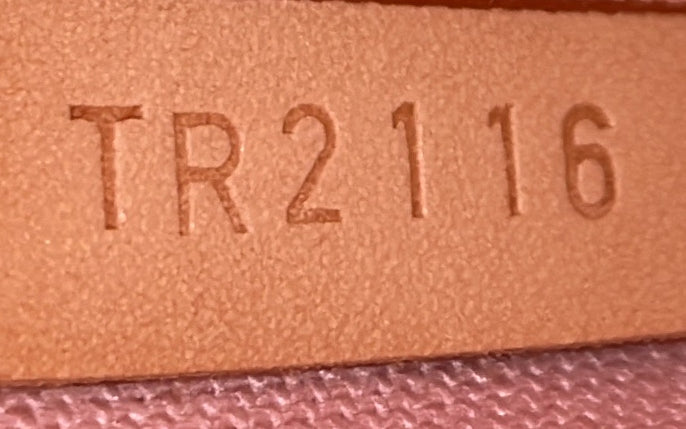 Condition: Good. Odor in interior. Creasing, wear and slight discoloration on exterior, darkening, scuffs, wear and watermarks on leather trims, handle and strap. Wear, discoloration and marks underneath flap and in interior, scratches and slight tarnish on hardware.