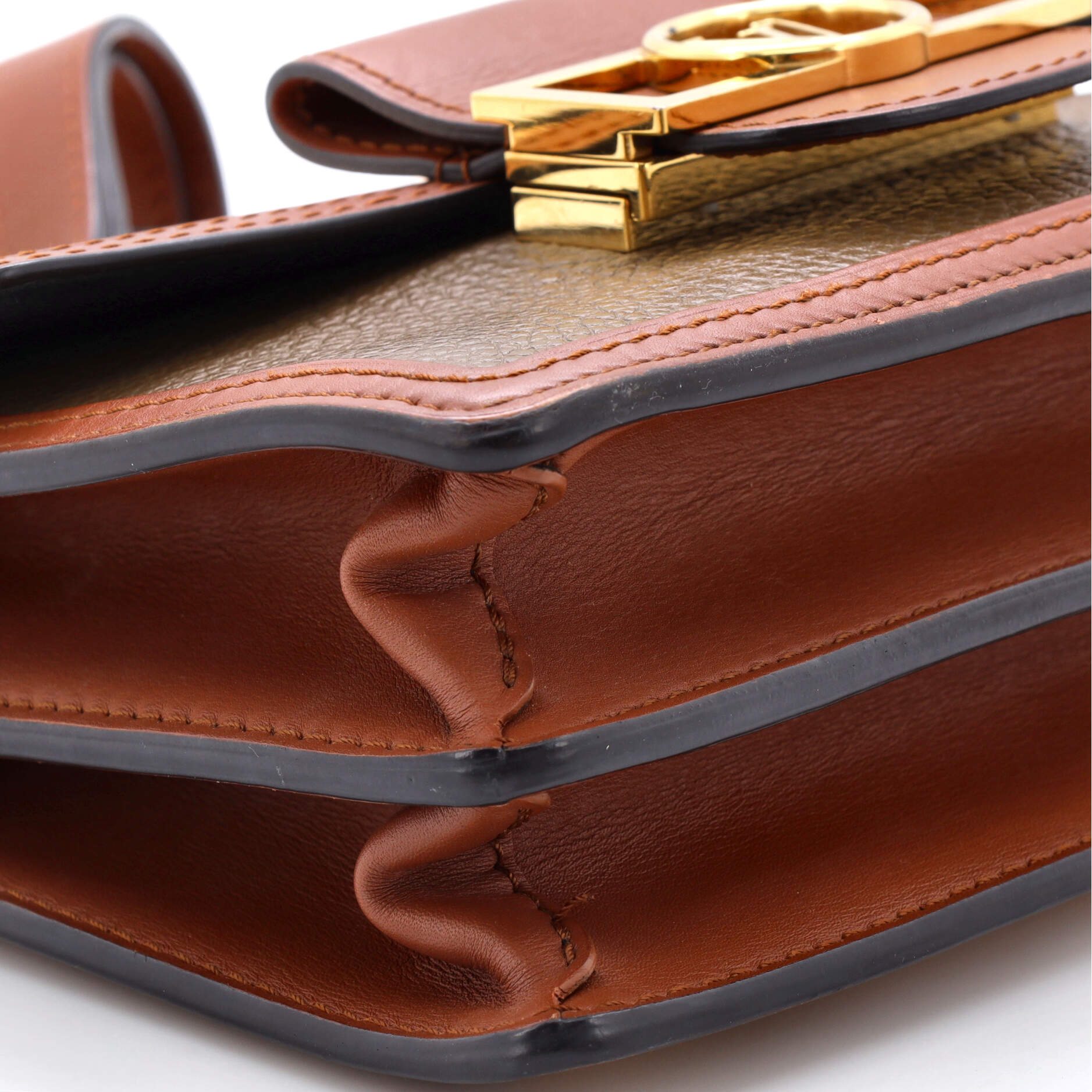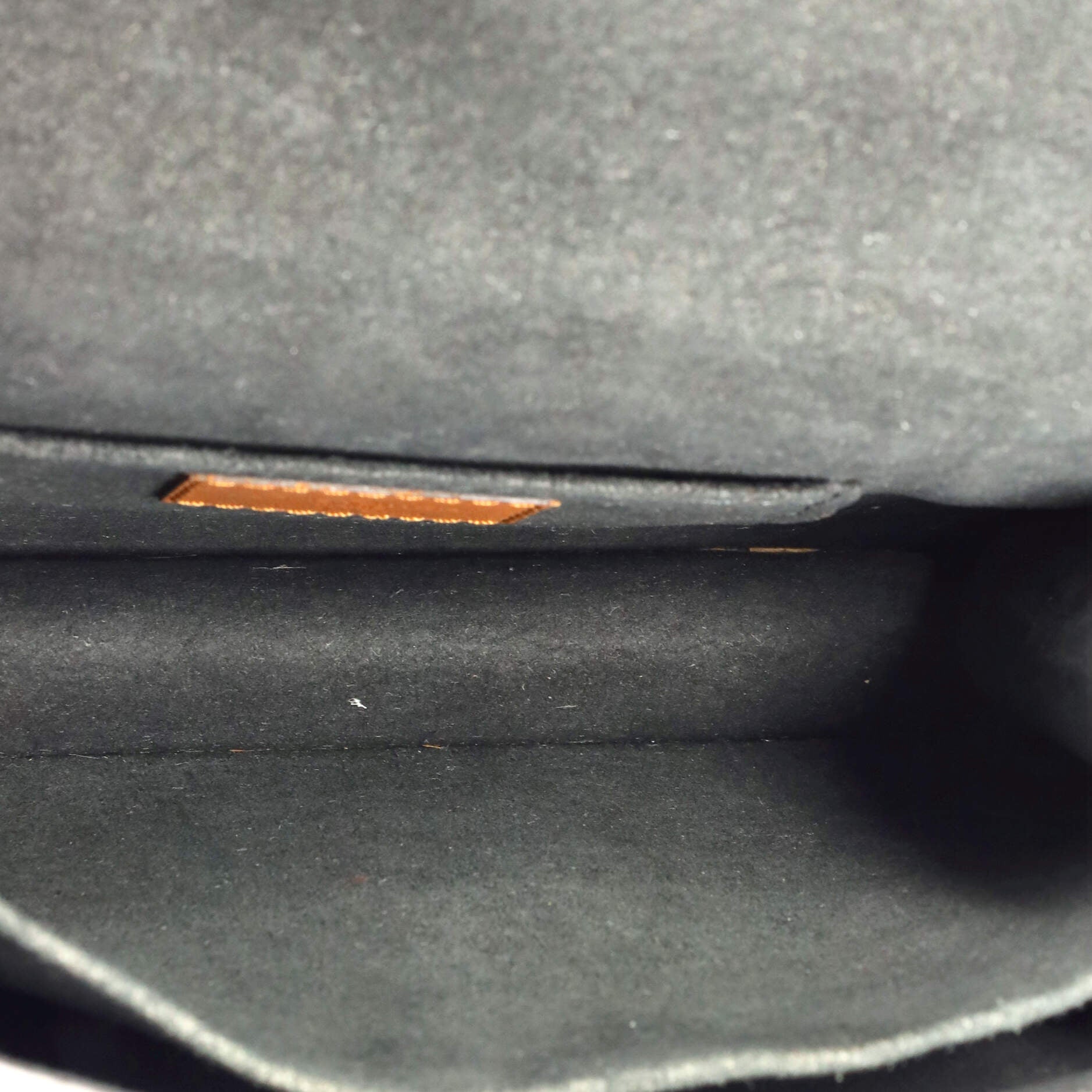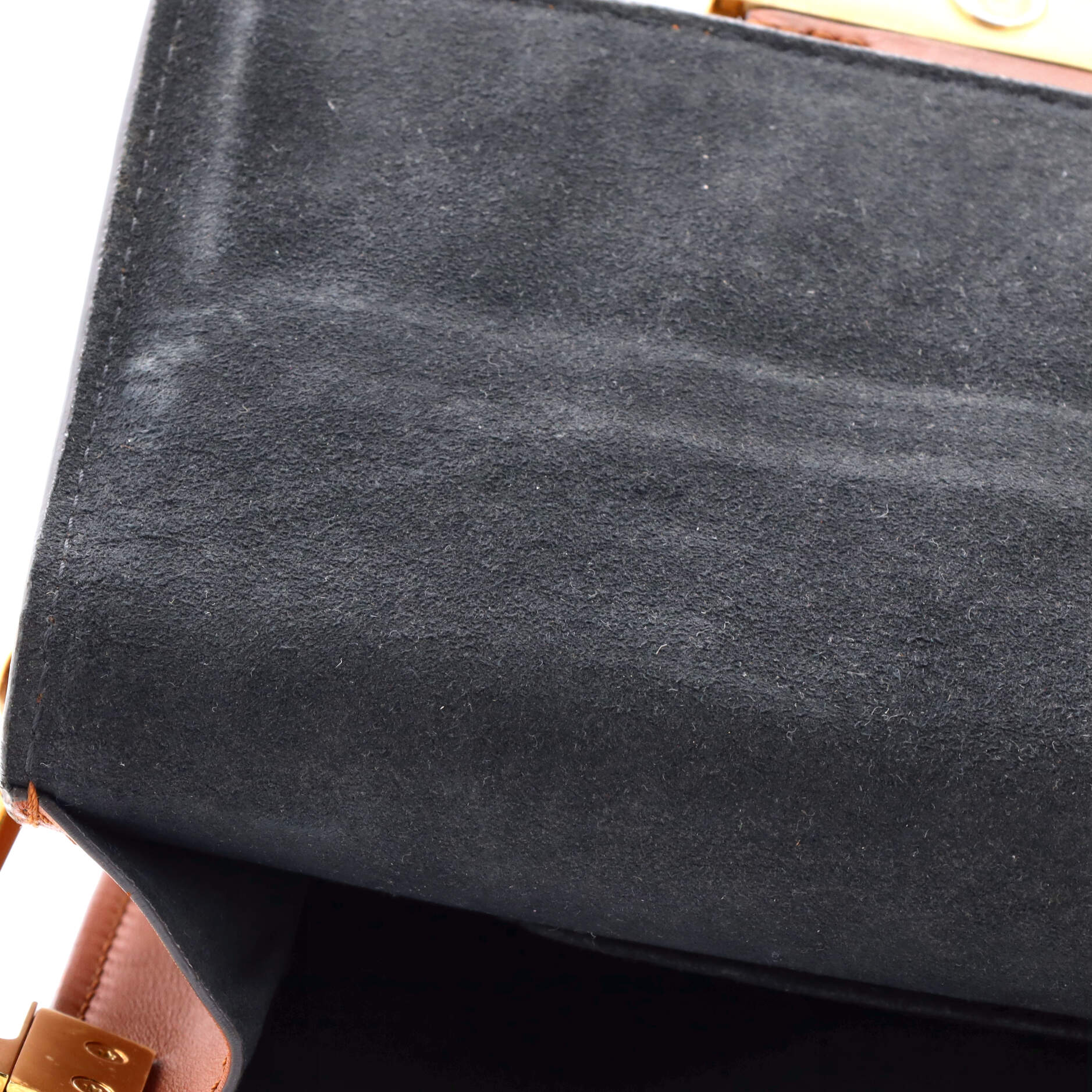 Condition: Very good. Odor in interior. Creasing, minor wear and marks on exterior and strap, wear on base corners, underneath flap and in interior, minor scuffs on exterior edges and strap. Light cracking on side flap opening corner wax edges, small marks underneath flap and in interior, scratches on hardware.