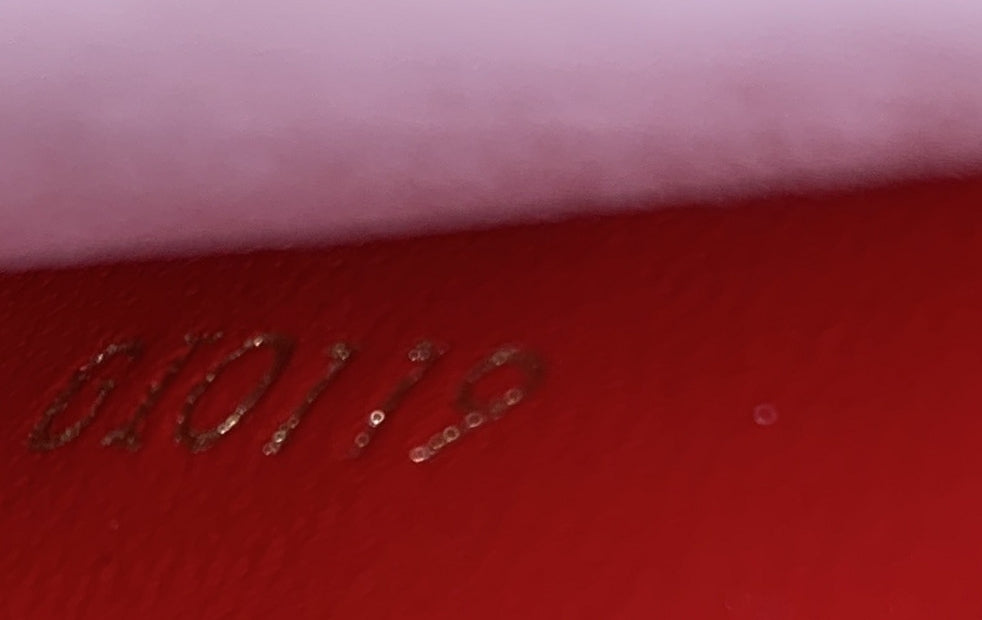 Condition: Very good. Minor wear on exterior and base corners, wear and minor darkening in interior, scratches on hardware.