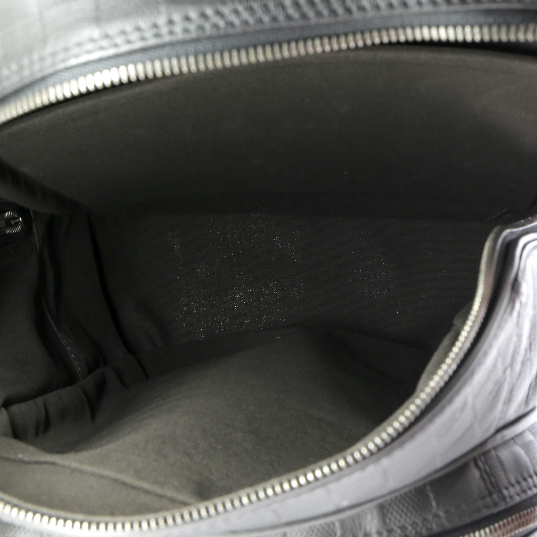 Condition: Very good. Creasing on exterior, scuffs and wear on leather trims, creasing on handle. Marks in interior, scratches on hardware.