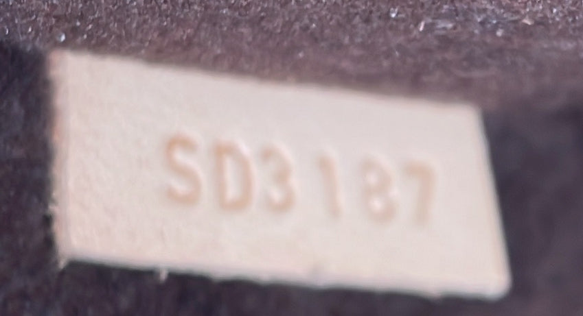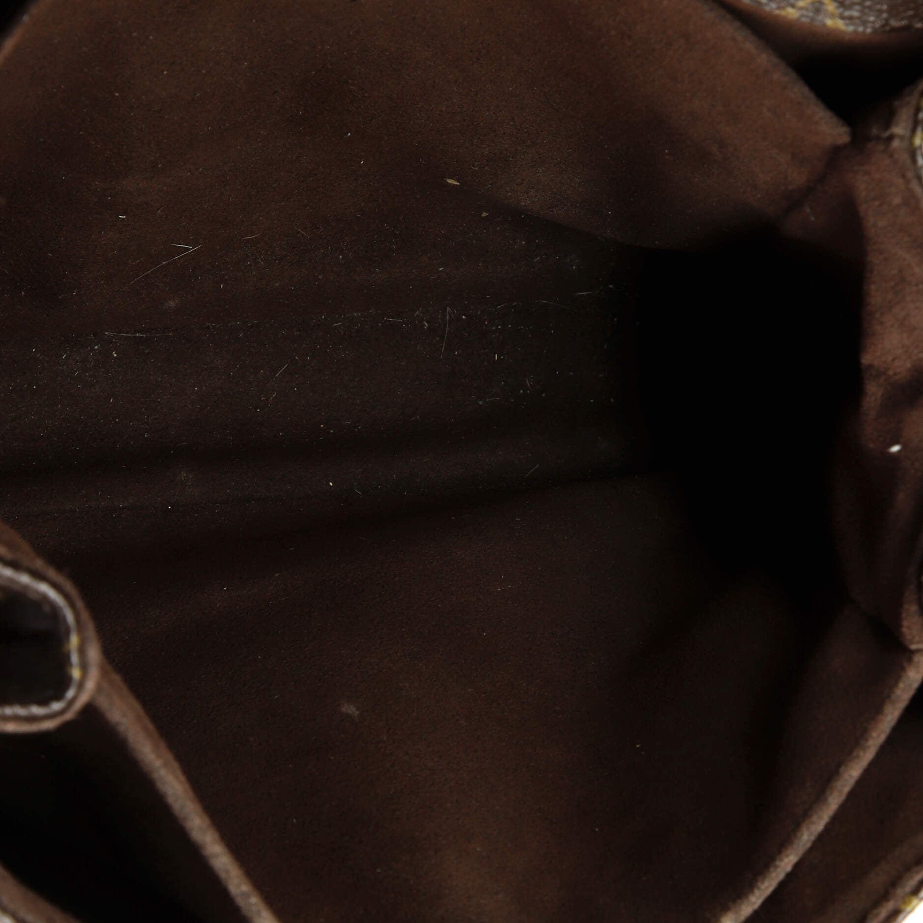 Condition: Good. Odor in interior. Creasing on exterior, moderate wear, darkening and scuffs on leather trims and handle, peeling on handle wax edges. Wear on strap and in interior, minor marks and pilling in interior, scratches, discoloration and minor tarnish on hardware.