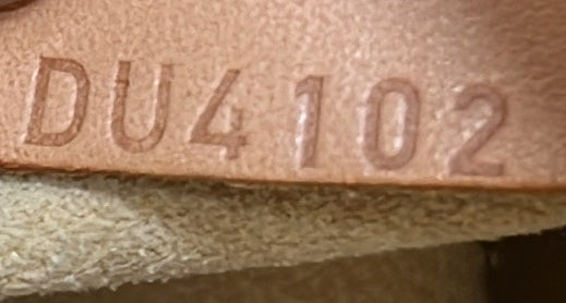 Condition: Very good. Odor in interior. Wear and creasing on exterior, minor darkening and watermarks on leather trims and handles, scratches on hardware.