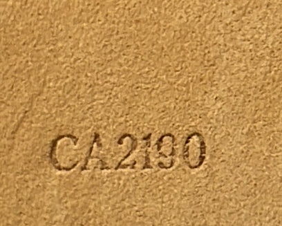 Condition: Very good. Wear, darkening and marks throughout belt interior, scratches on hardware.