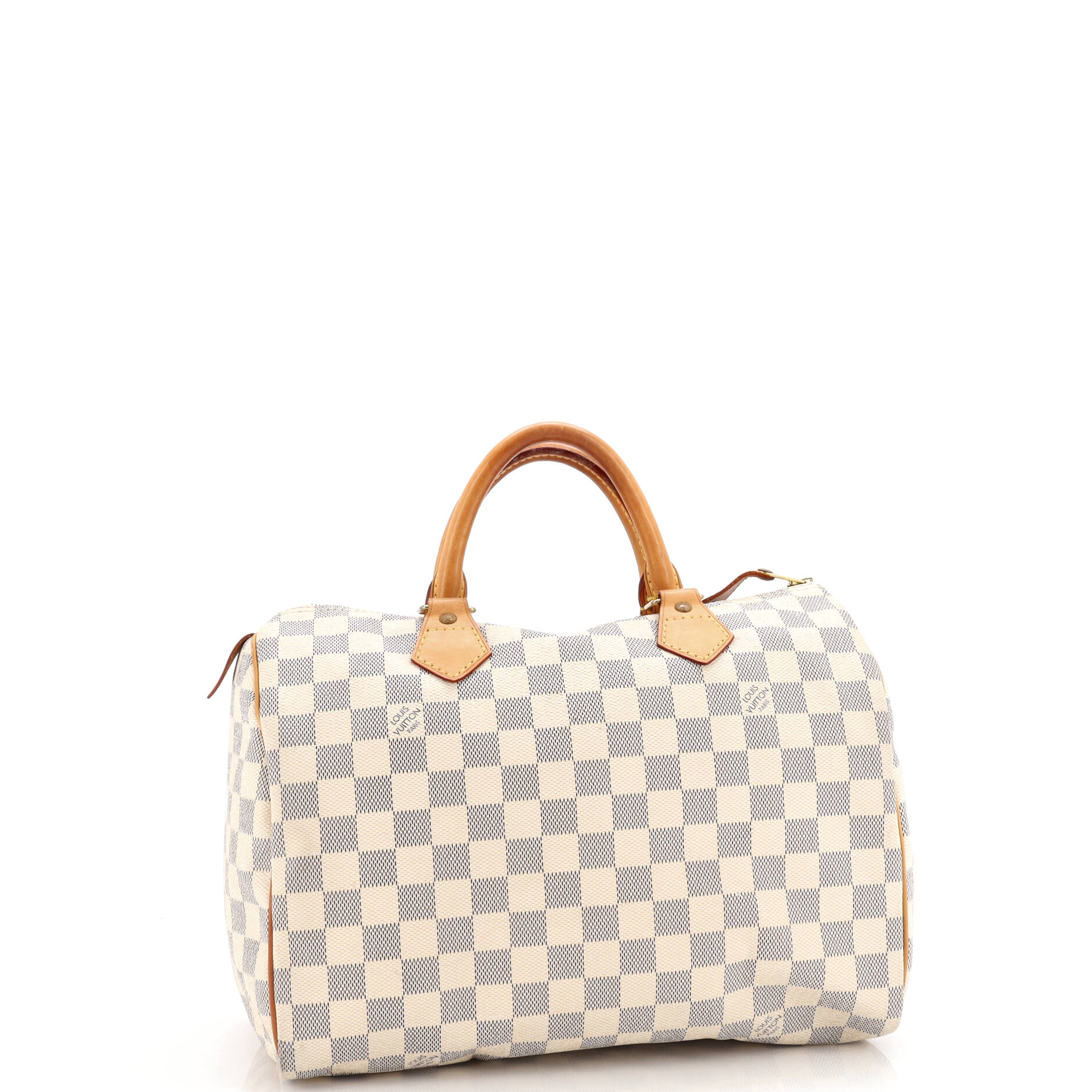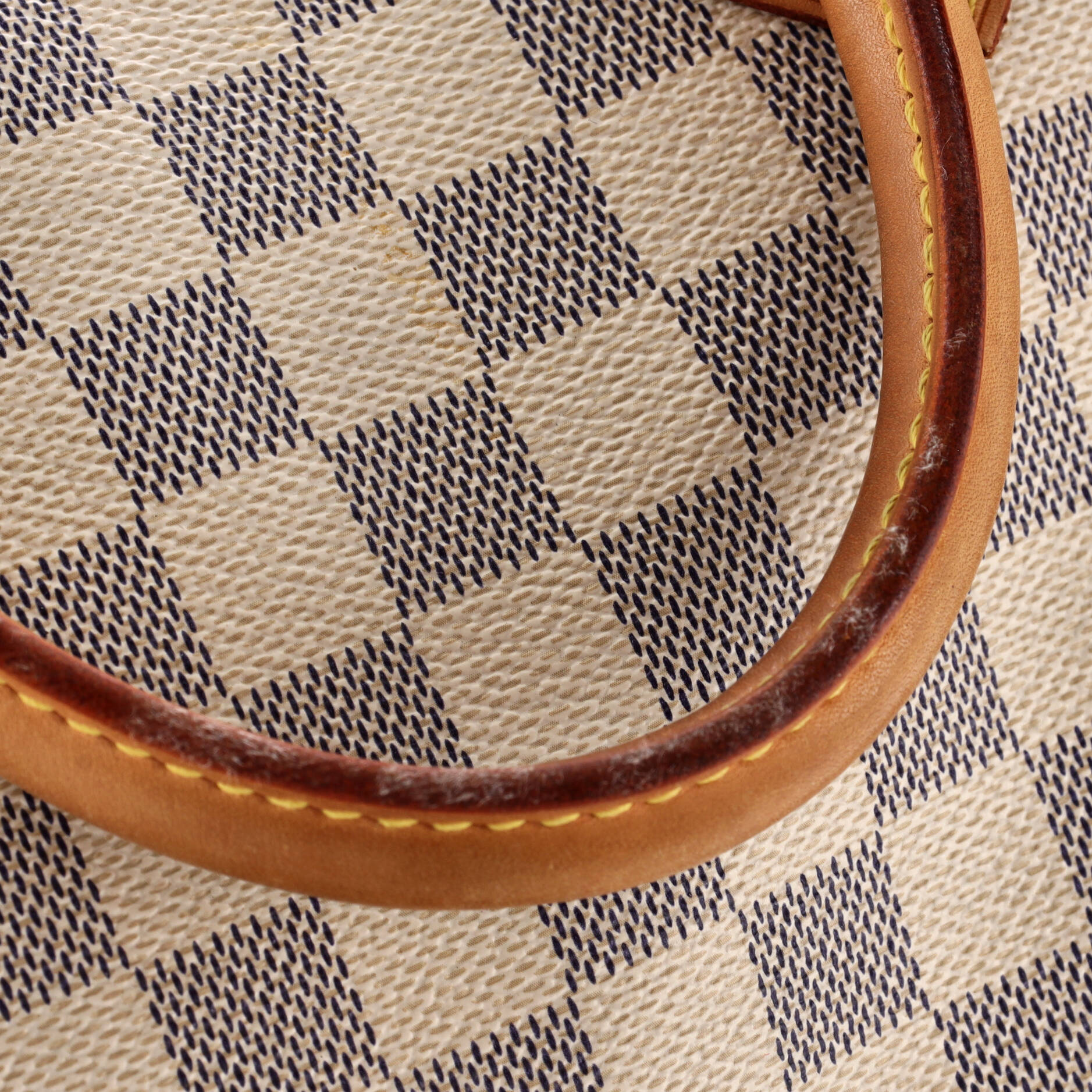 Condition: Good. Odor in interior. Creasing, wear and minor discoloration on exterior, moderate wear on base corners and in interior, moderate darkening, scuffs, wear and watermarks on leather trims and handles. Cracking and minor fraying on handle wax edges, stains, minor darkening and marks in interior, scratches and tarnish on hardware.