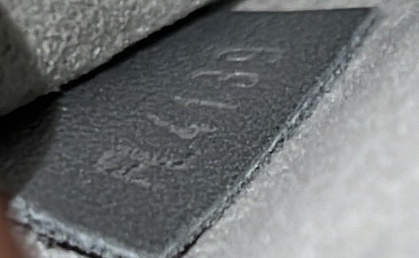 Condition: Very good. Creasing and minor wear on exterior and shoulder pad, slight darkening and moderate stains underneath flap and in interior, scratches on hardware.