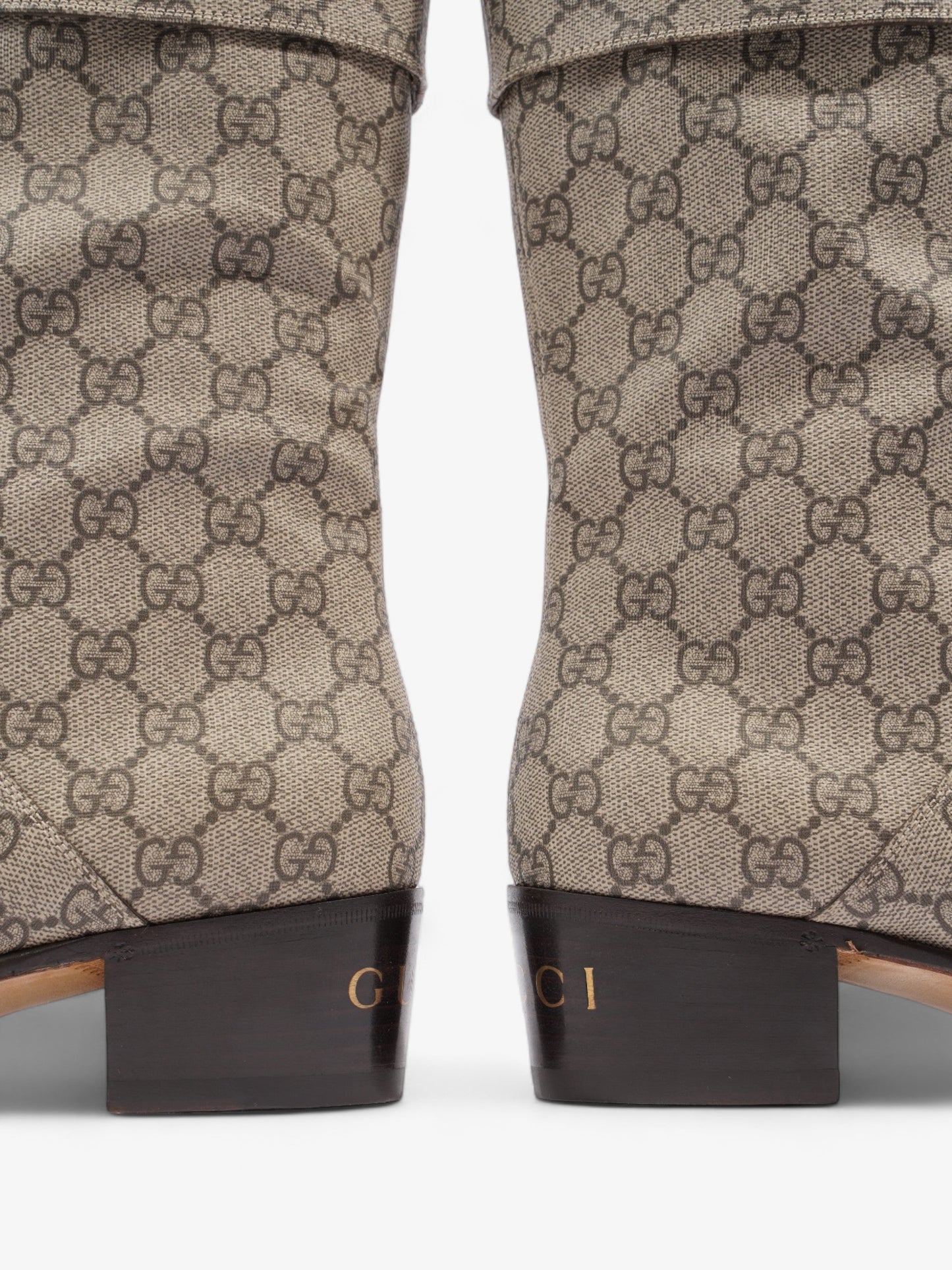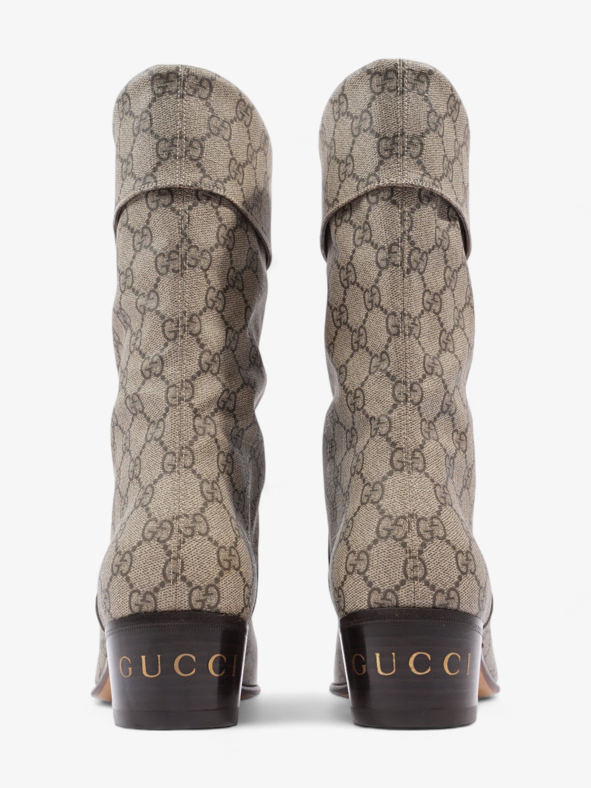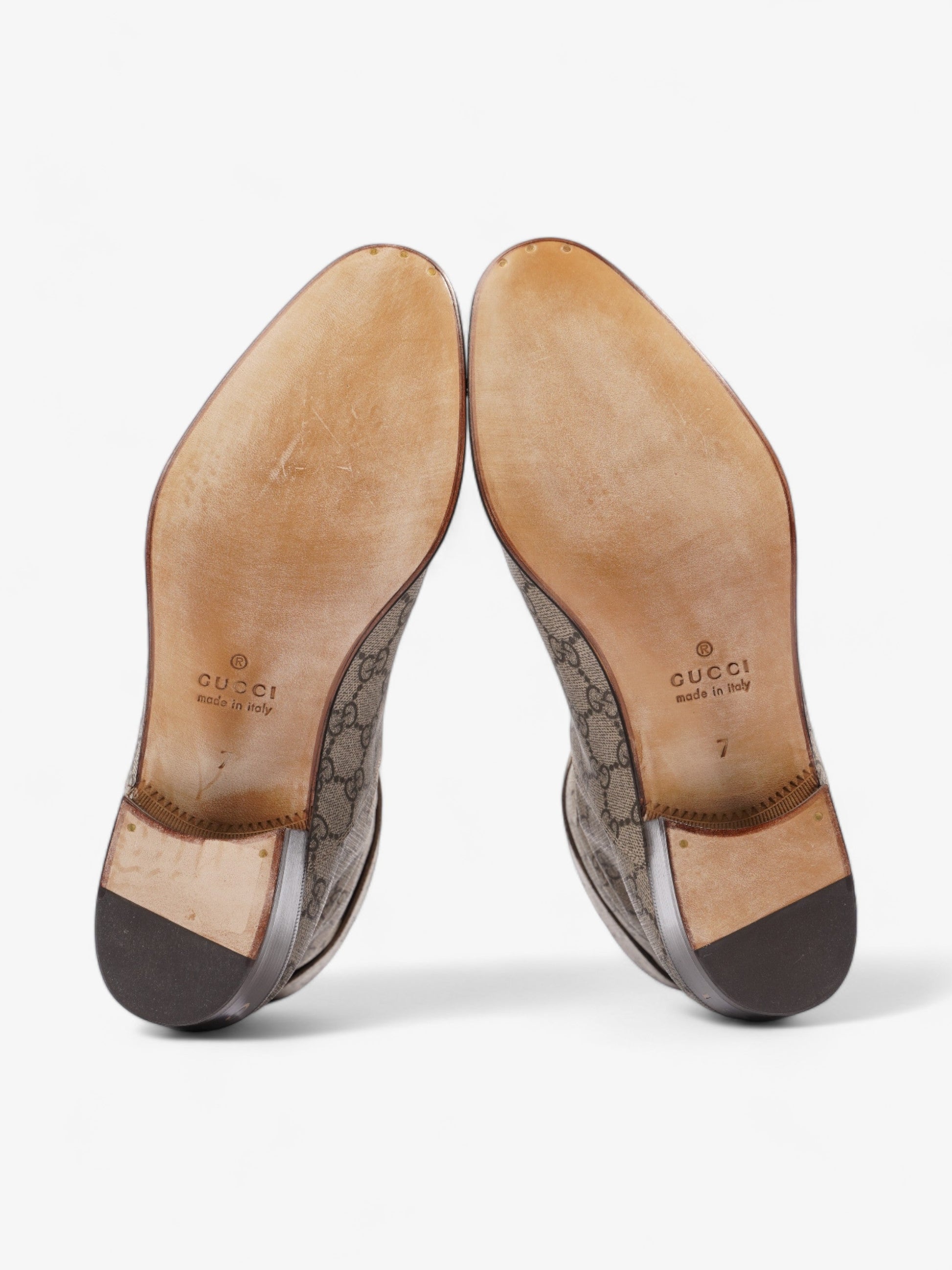 Gucci Heeled Ankle Boots 50mm Beige And Ebony GG Supreme Fabric EU 41 UK 7