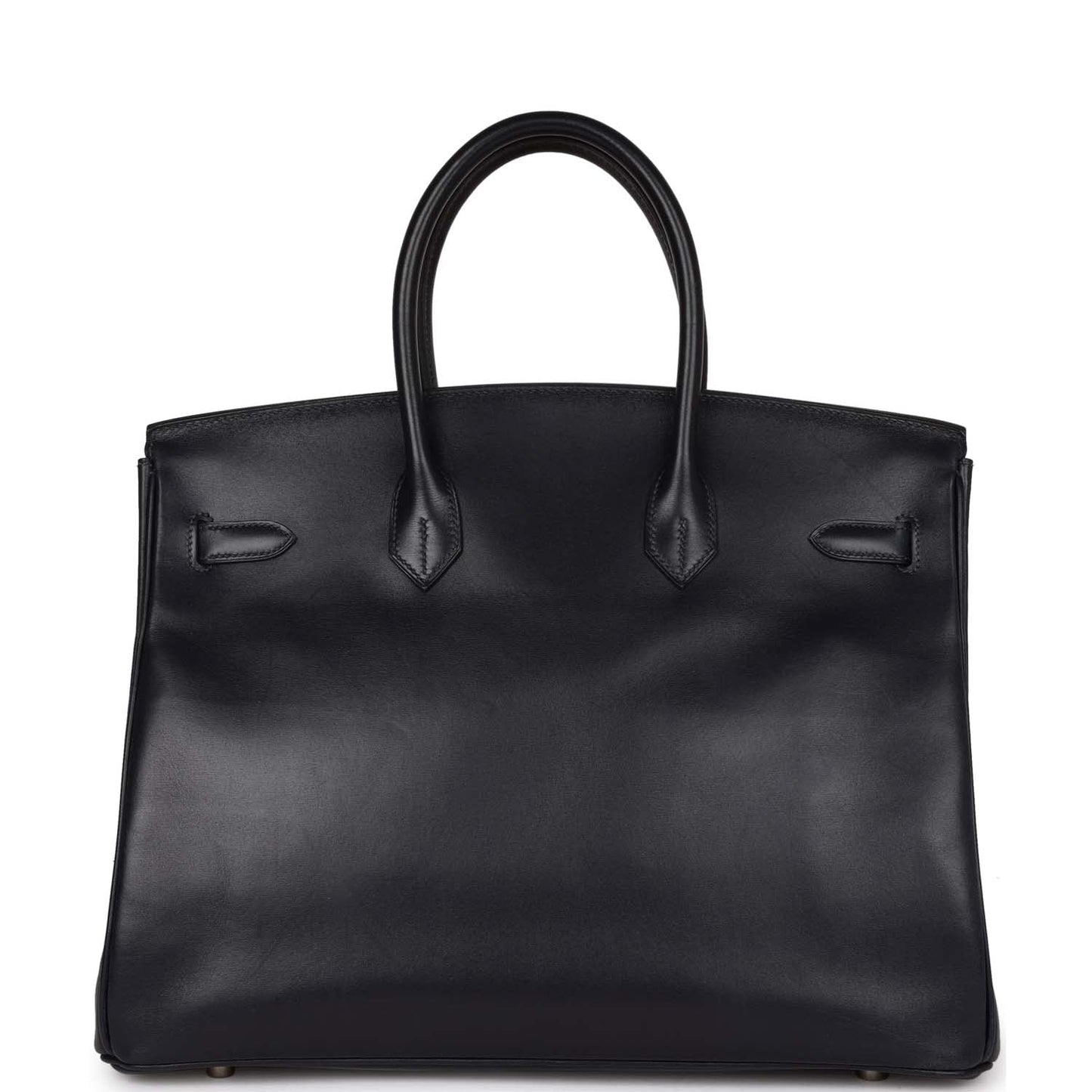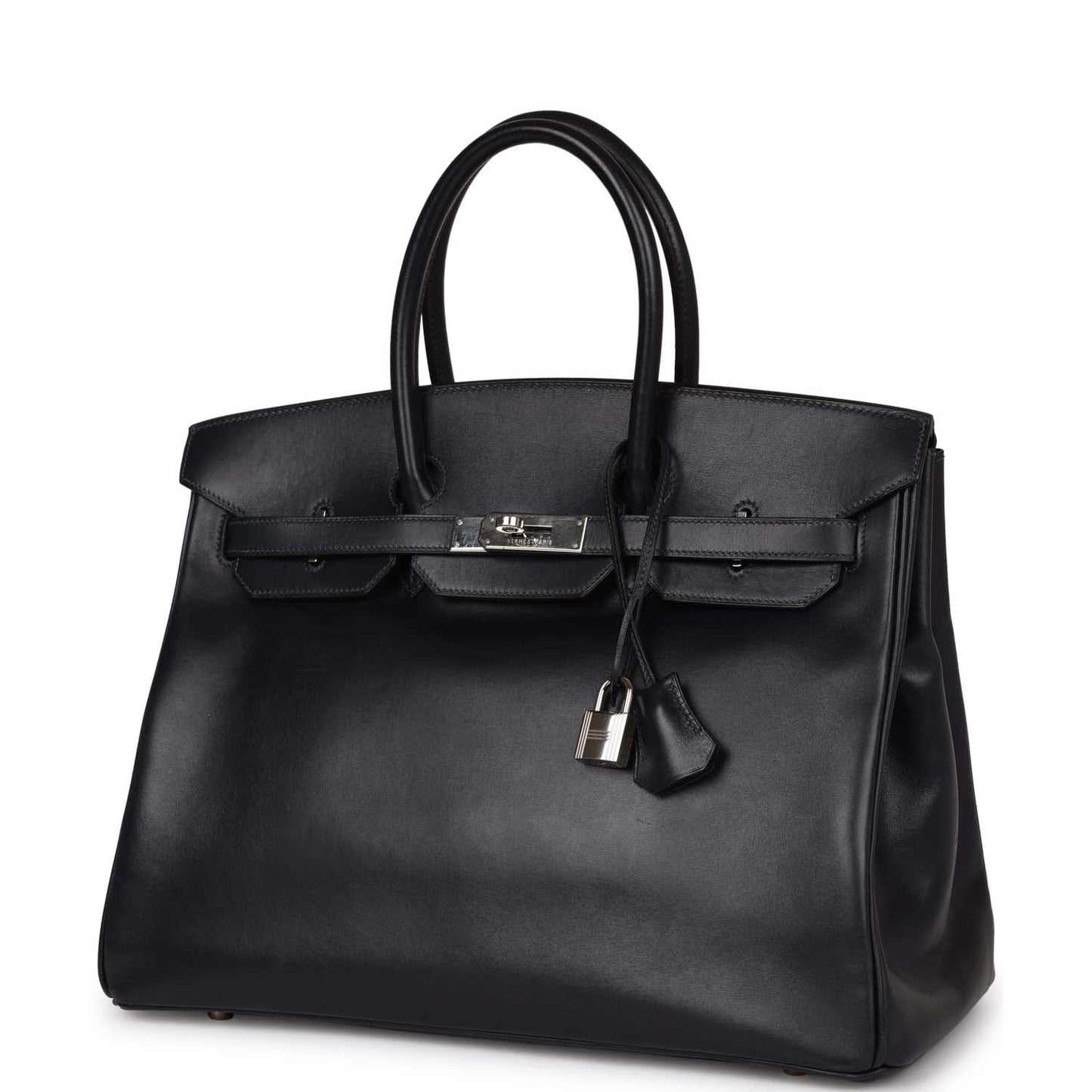 Vintage Hermes Birkin 35 Bleu Navy Box Palladium Hardware