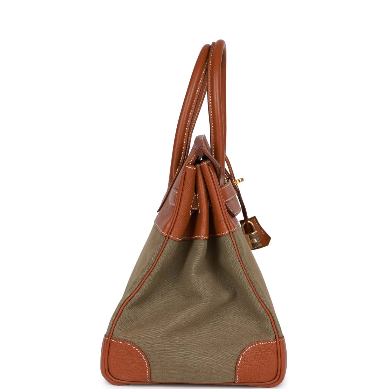 Vintage Hermes Birkin 35 Gold Courchevel and Olive Toile H Gold Hardware