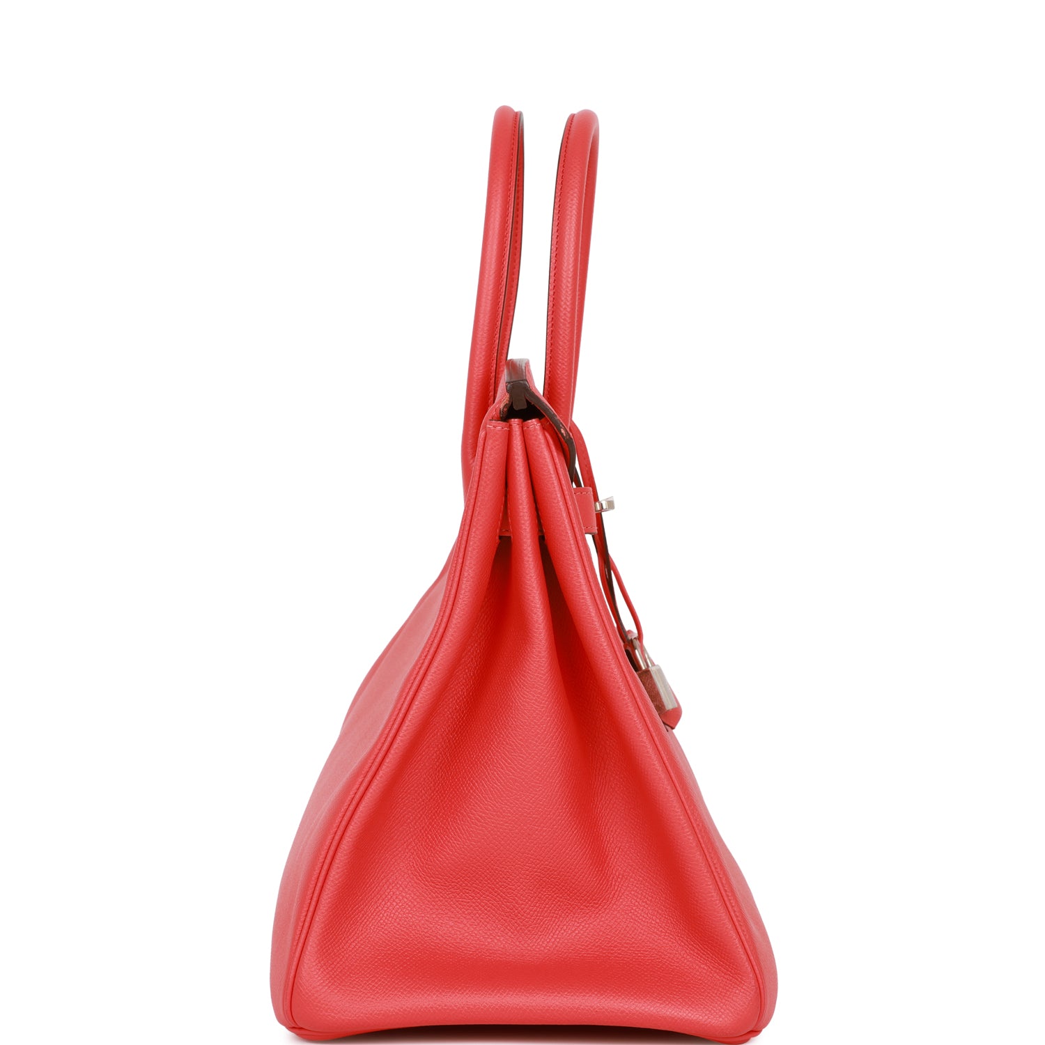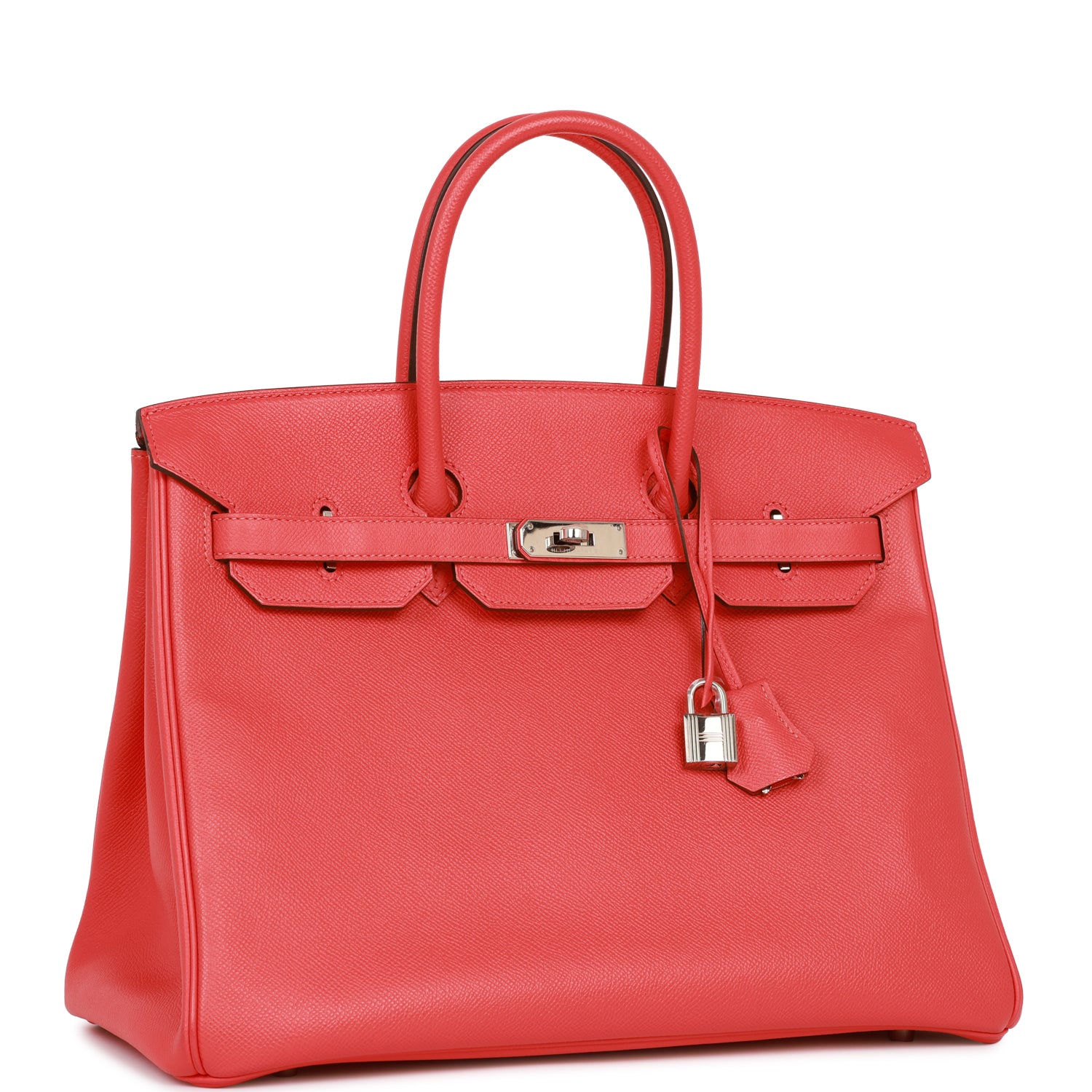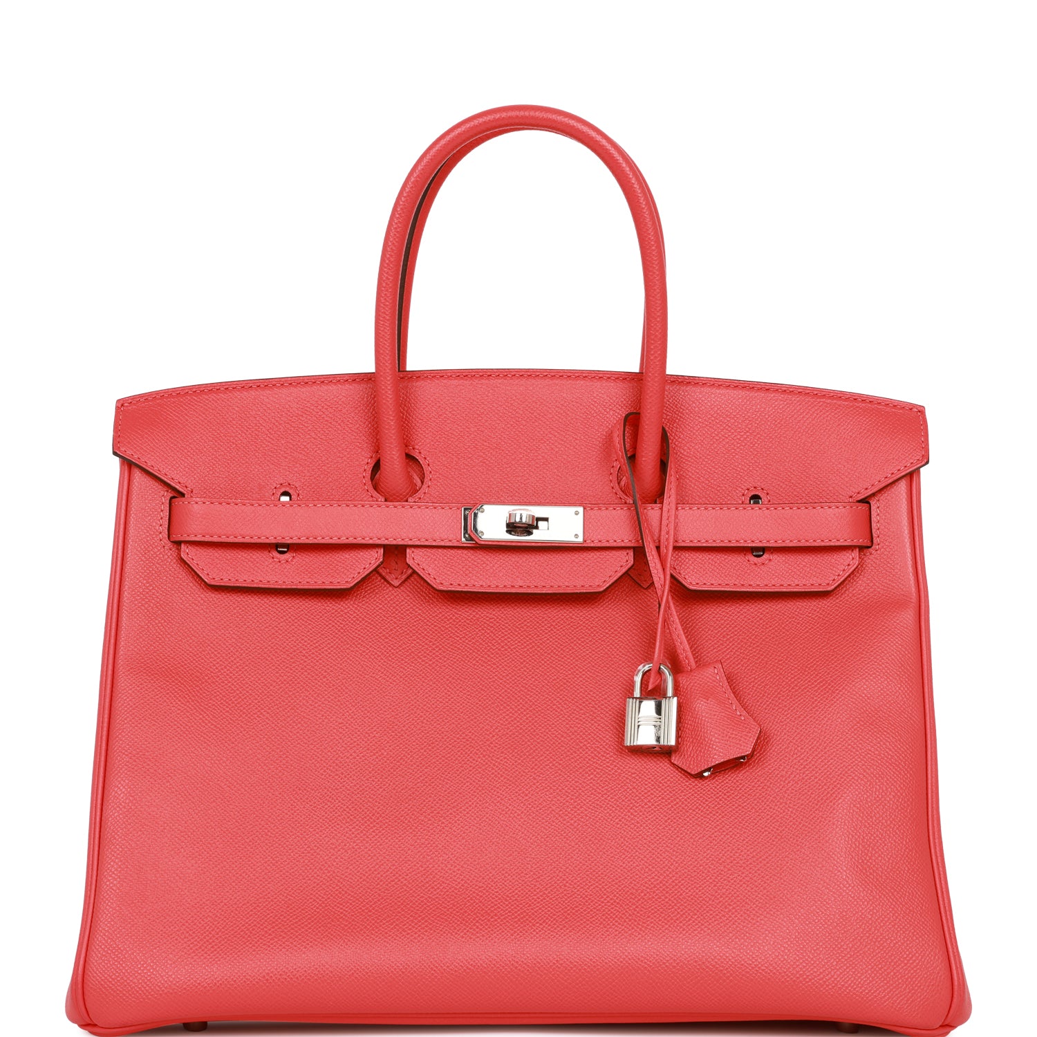 This Birkin is in Rose Jaipur epsom leather with palladium hardware and has tonal stitching, front flap, two straps with center toggle closure, clochette with lock and two keys, and double rolled handles.