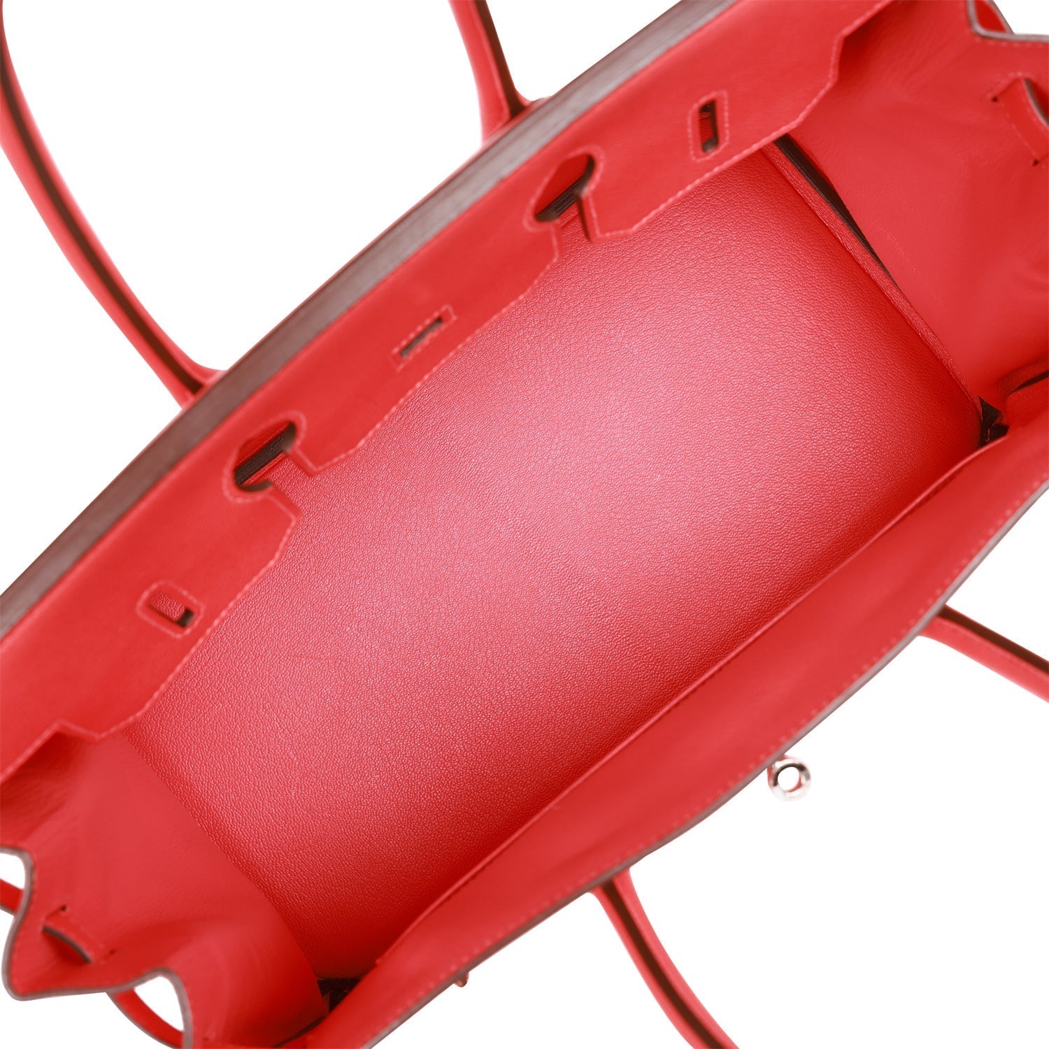 The interior is lined with Rose Jaipur chevre and has one zip pocket with an Hermes engraved zipper pull and an open pocket on the opposite side.