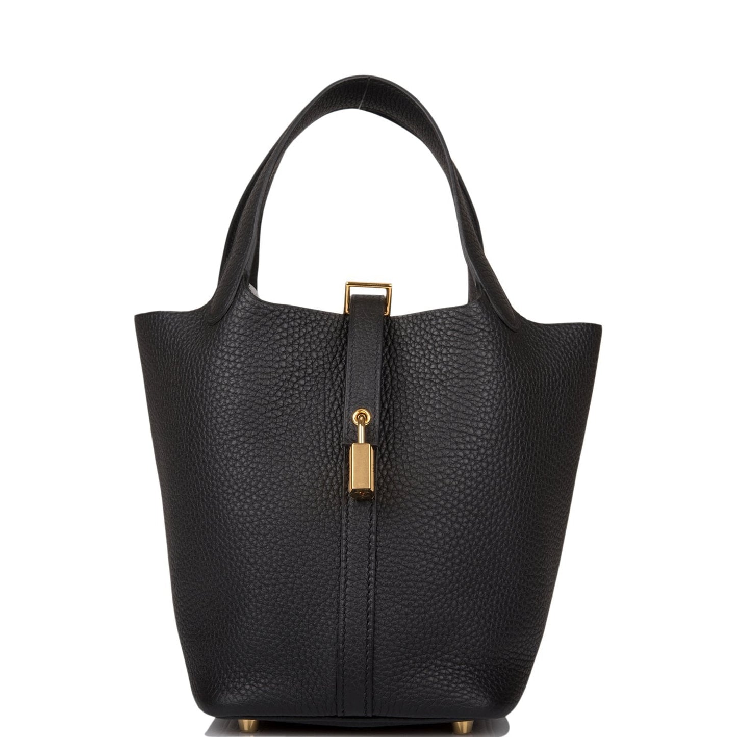 Hermes Black Clemence Picotin Lock 18cm Gold Hardware