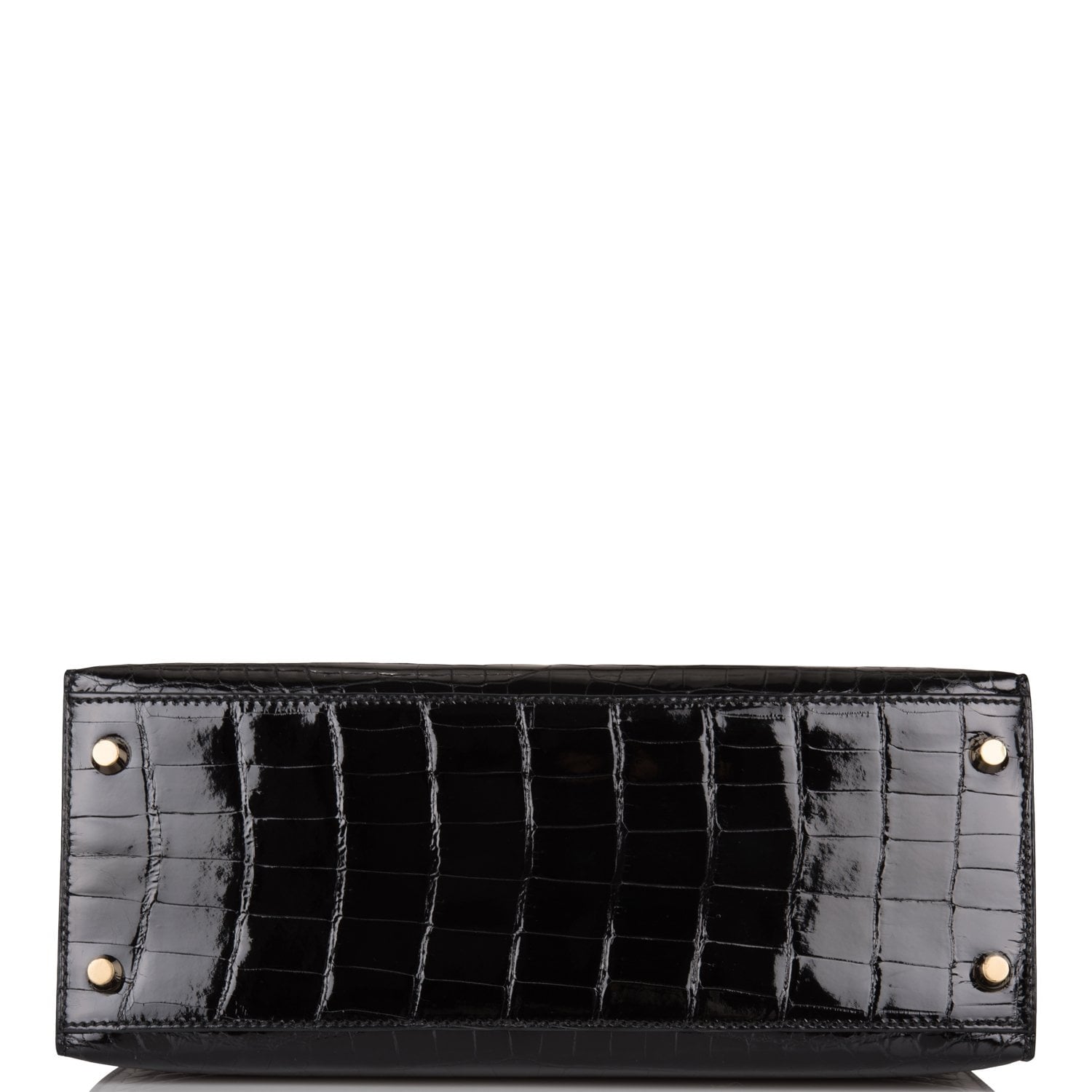 Hermes Kelly 28 Sellier Black Shiny Niloticus Crocodile Gold Hardware