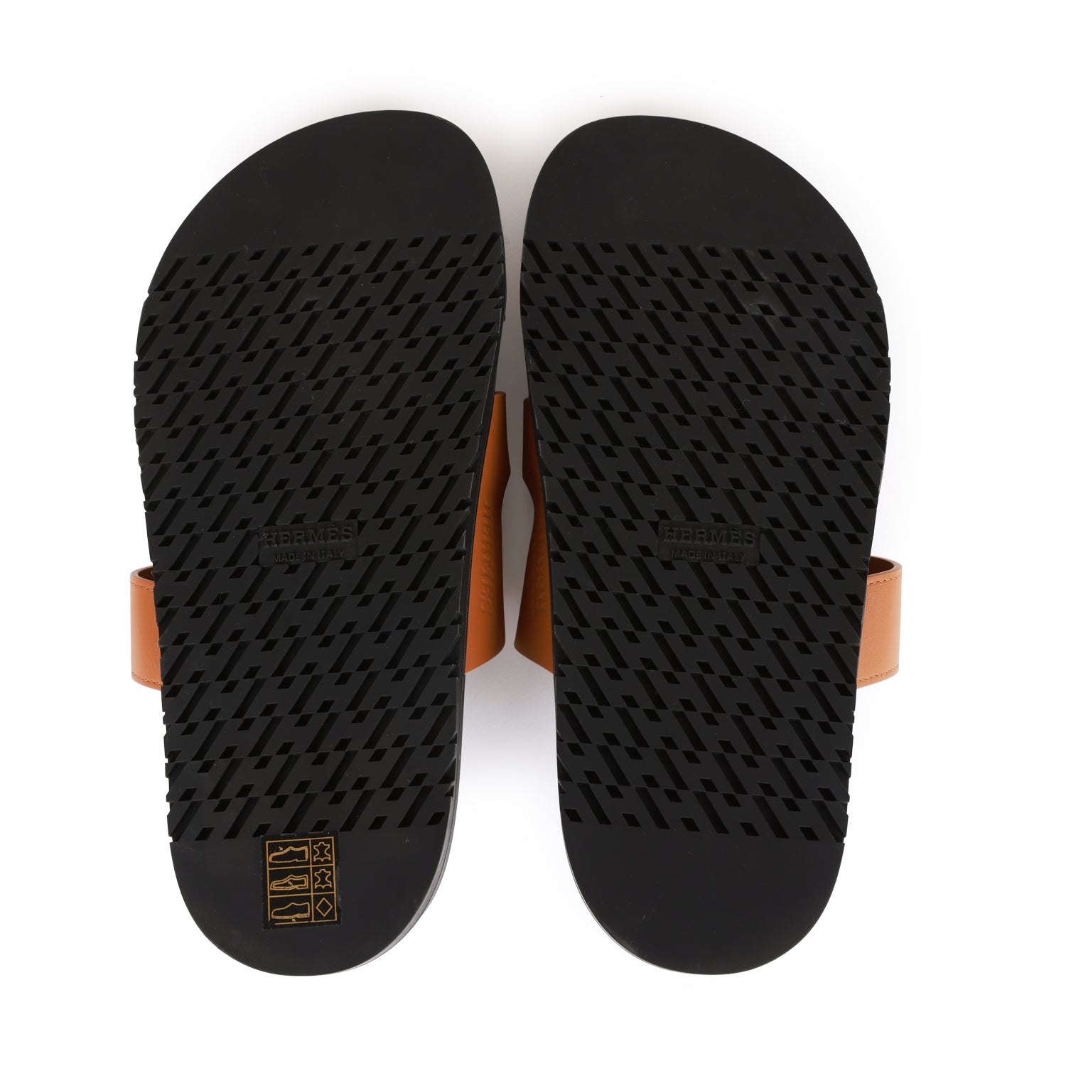 This pair of Cypre sandals are in gold calfskin and feature the iconic H and a velcro crossover strap.
