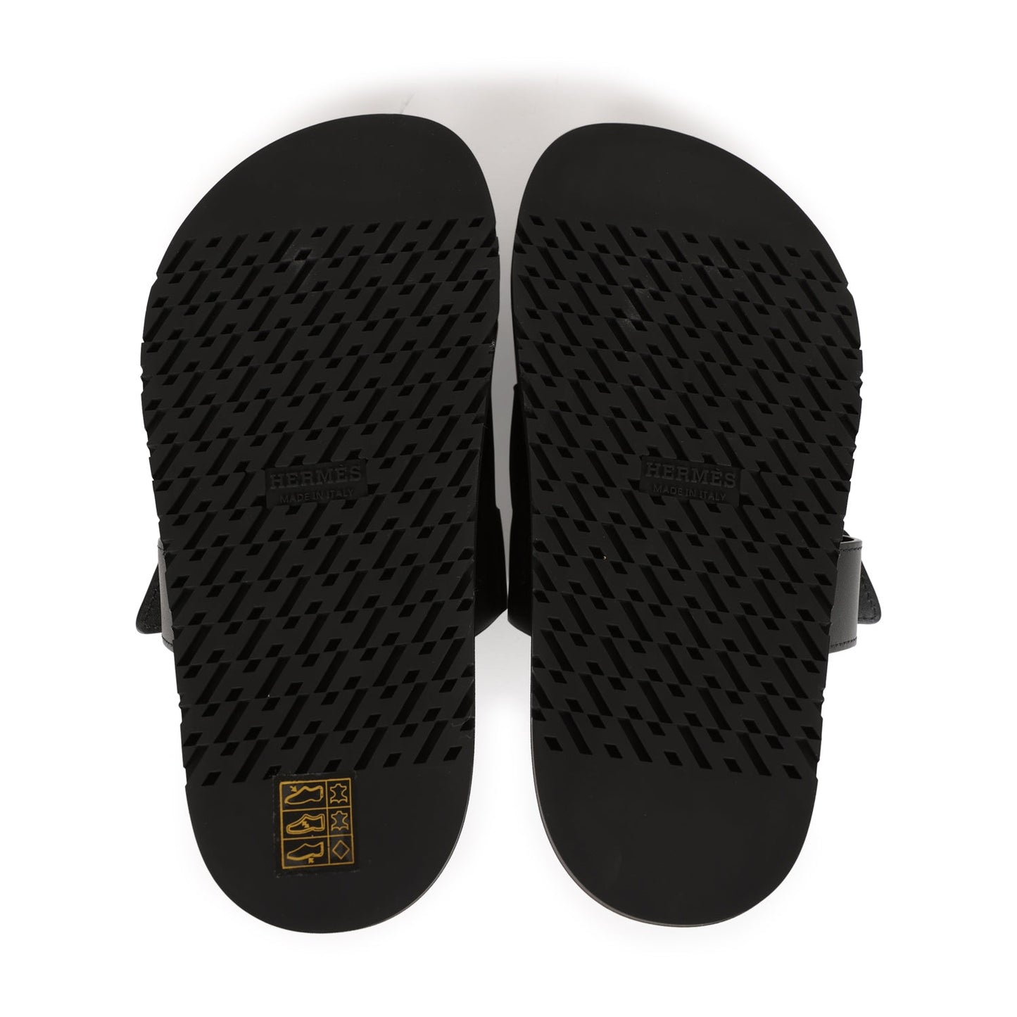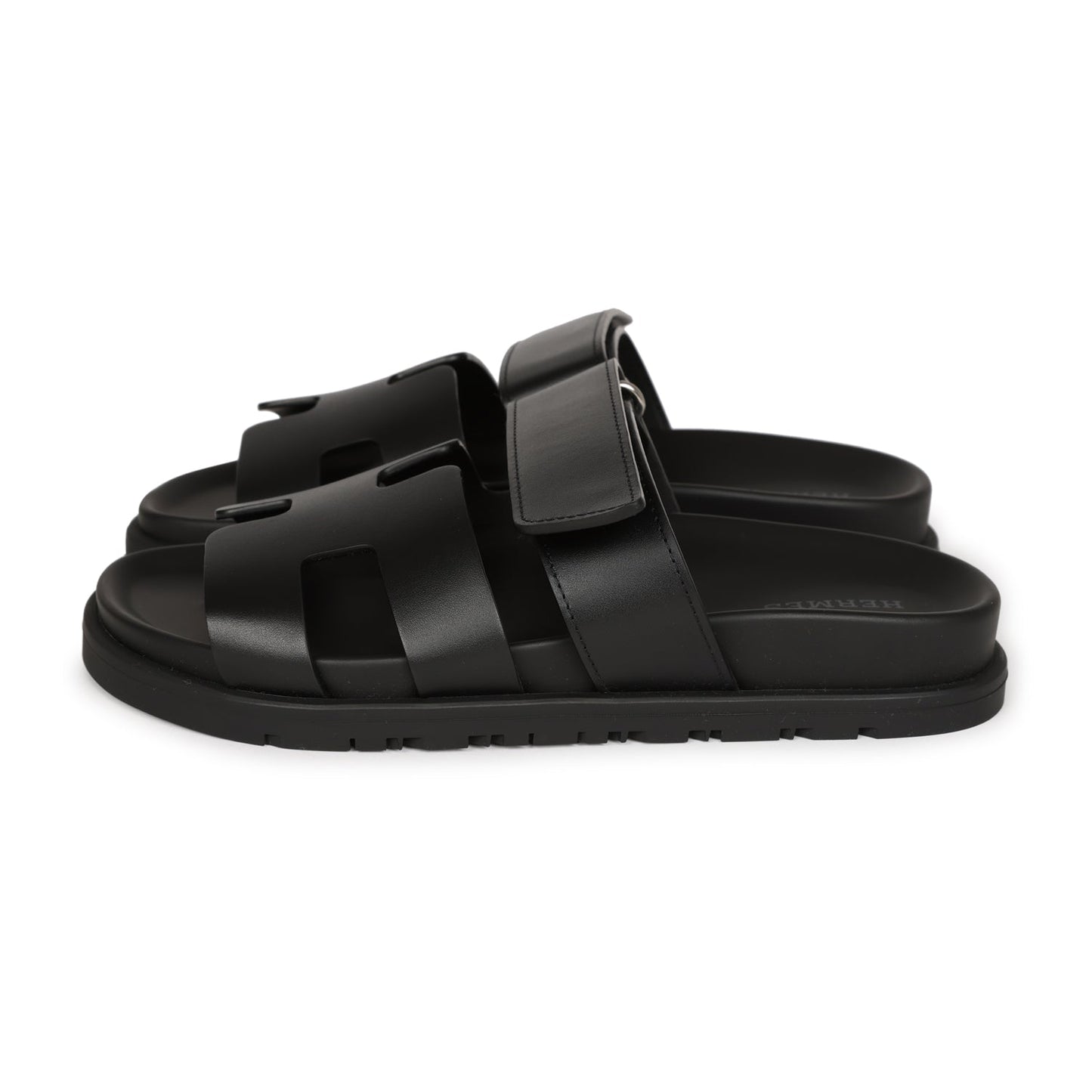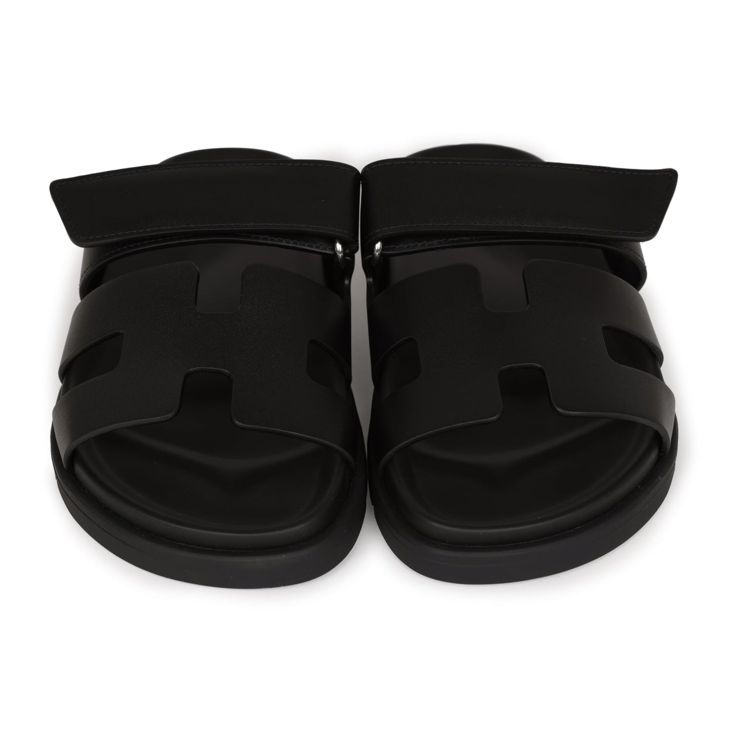 Hermes Chypre Sandals Black Calfskin Palladium Hardware 34.5