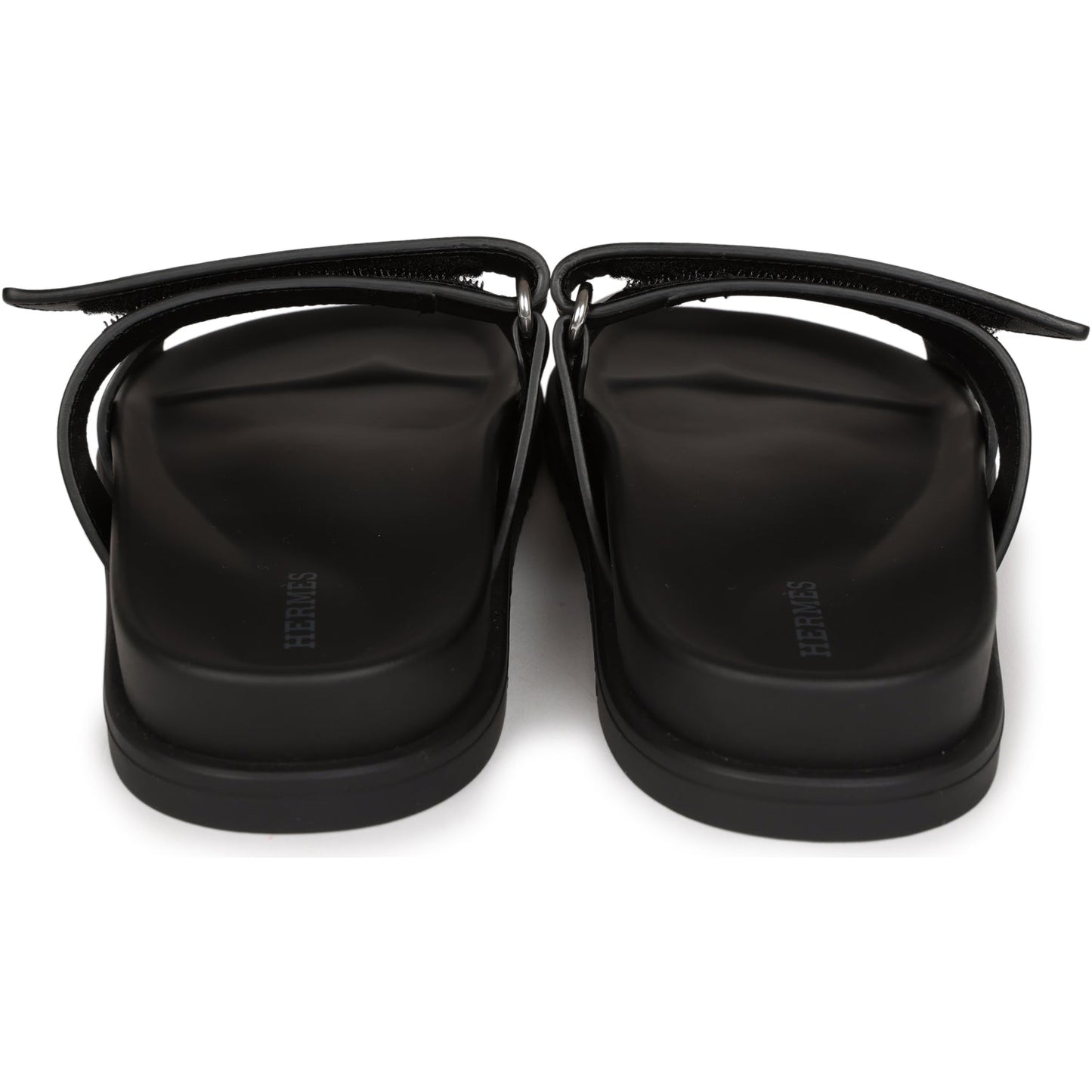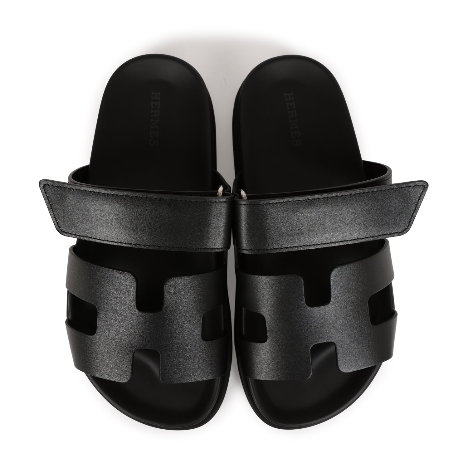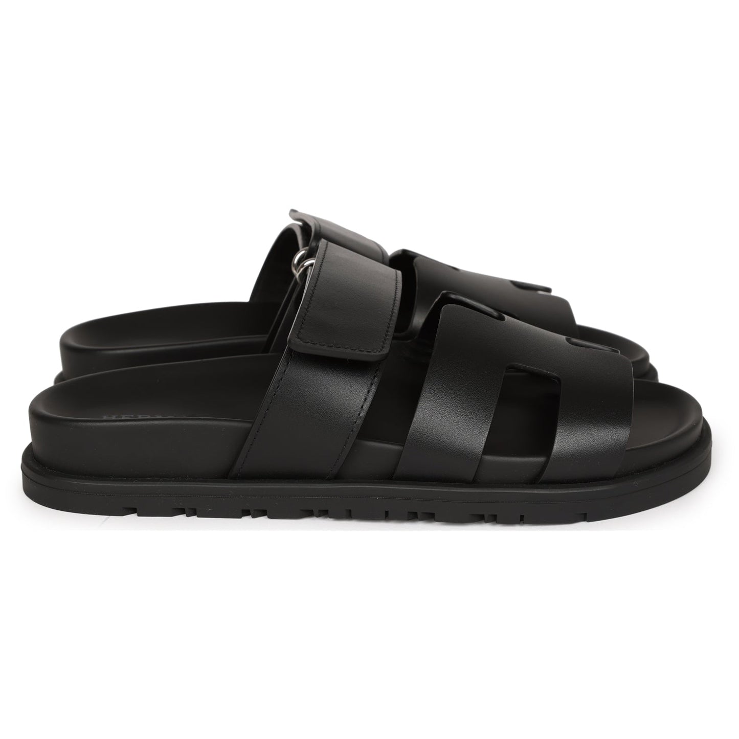 Hermes Chypre Sandals Black Calfskin Palladium Hardware 34.5