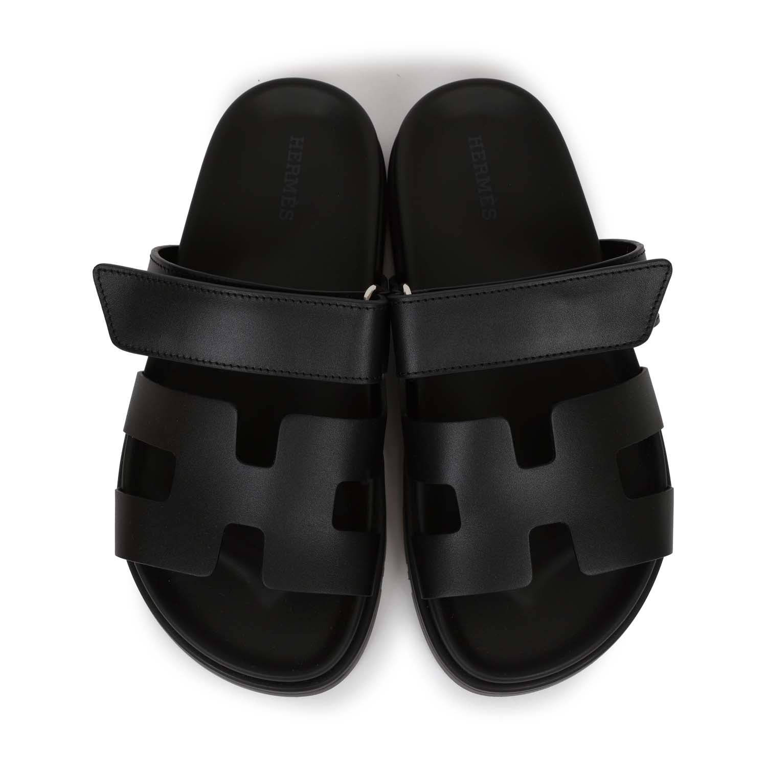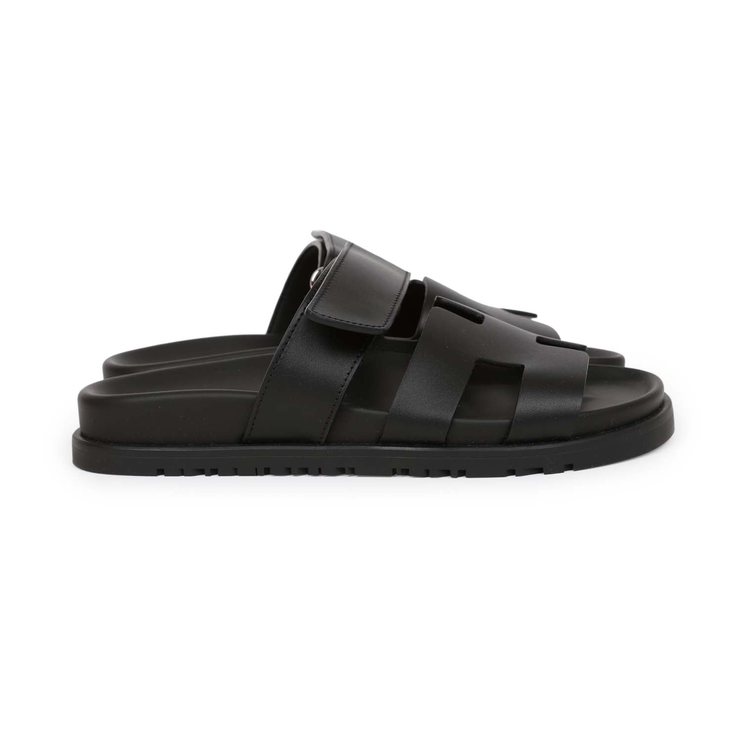 Hermes Chypre Techno Sandals Black Calfskin Palladium Hardware 35