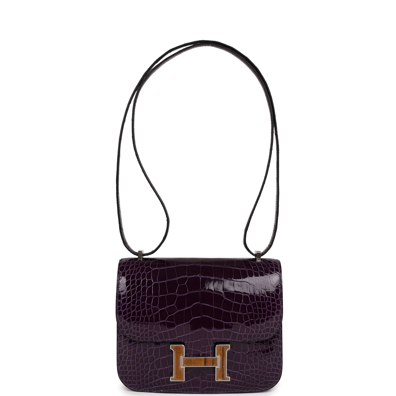 Hermes Constance 18 Amethyst Shiny Alligator Tigers Eye Quartz Palladium Hardware