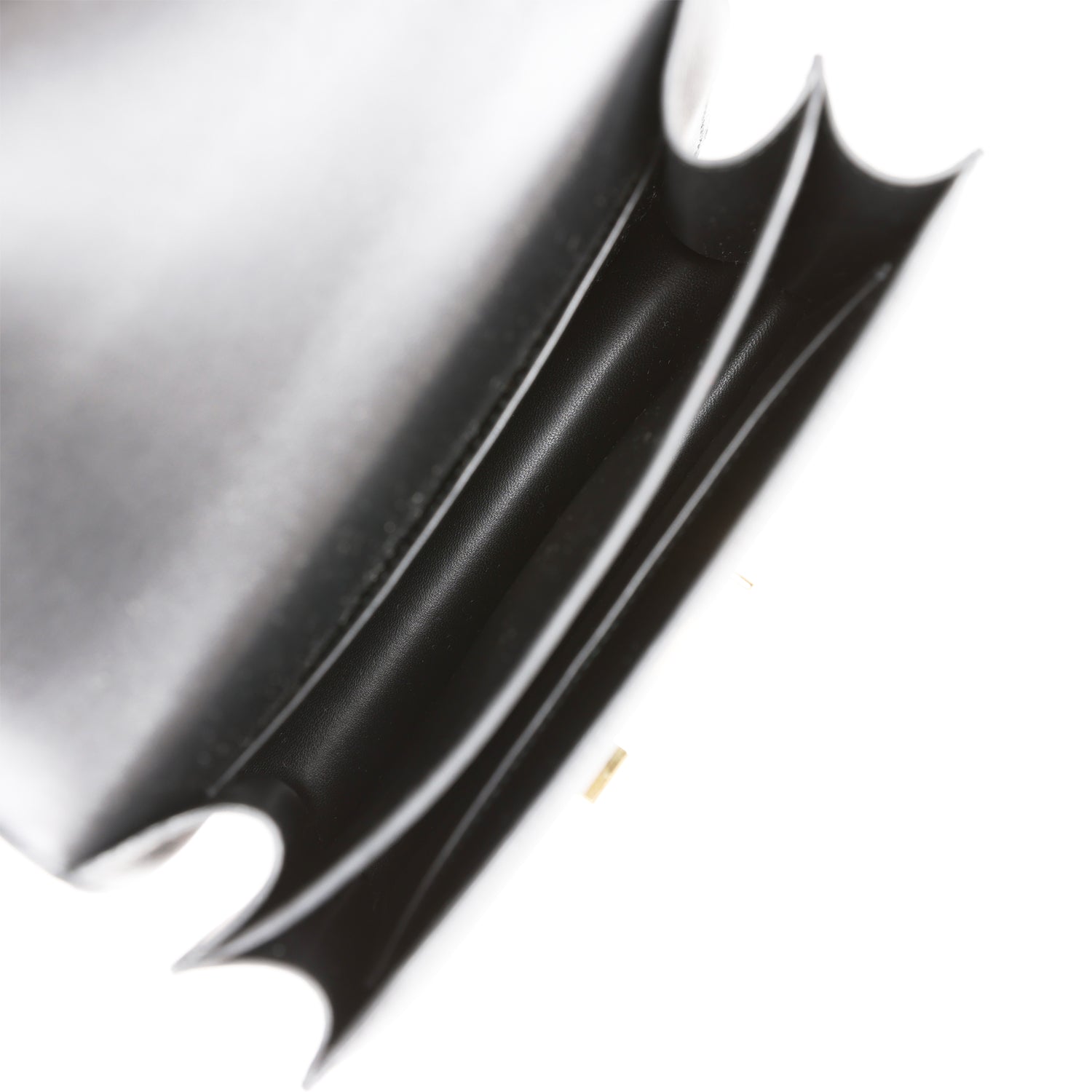 This Constance is in Black epsom leather with gold hardware and has tonal stitching, a metal "H" snap lock closure and adjustable shoulder strap.
