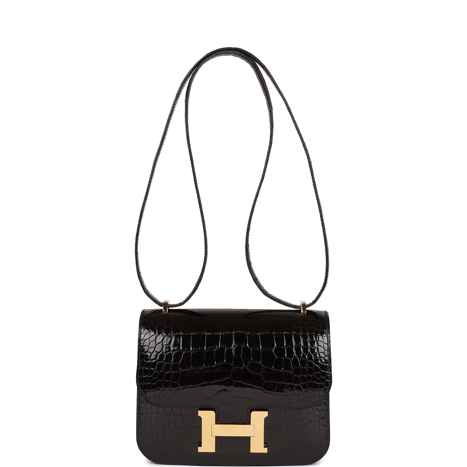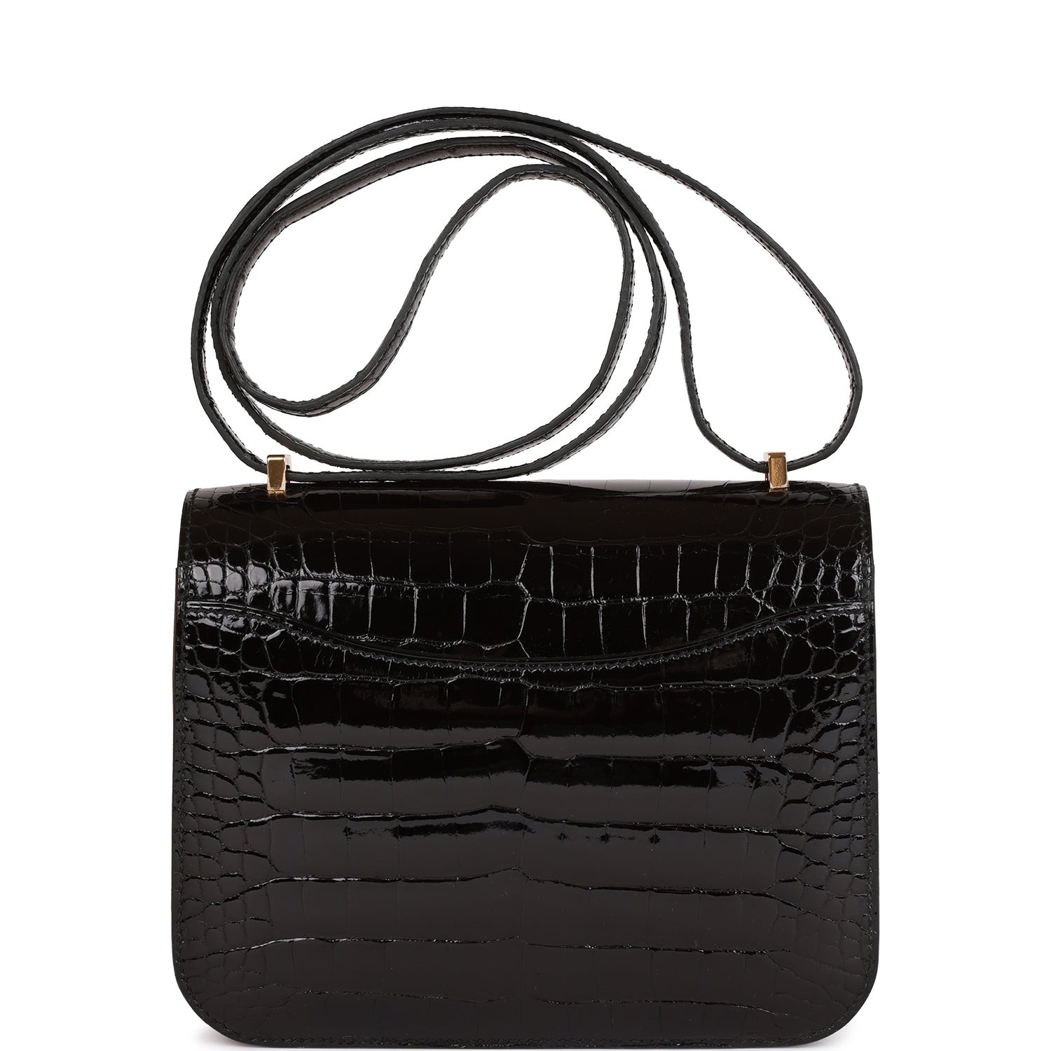 Hermes Constance 18 Black Shiny Alligator Gold Hardware