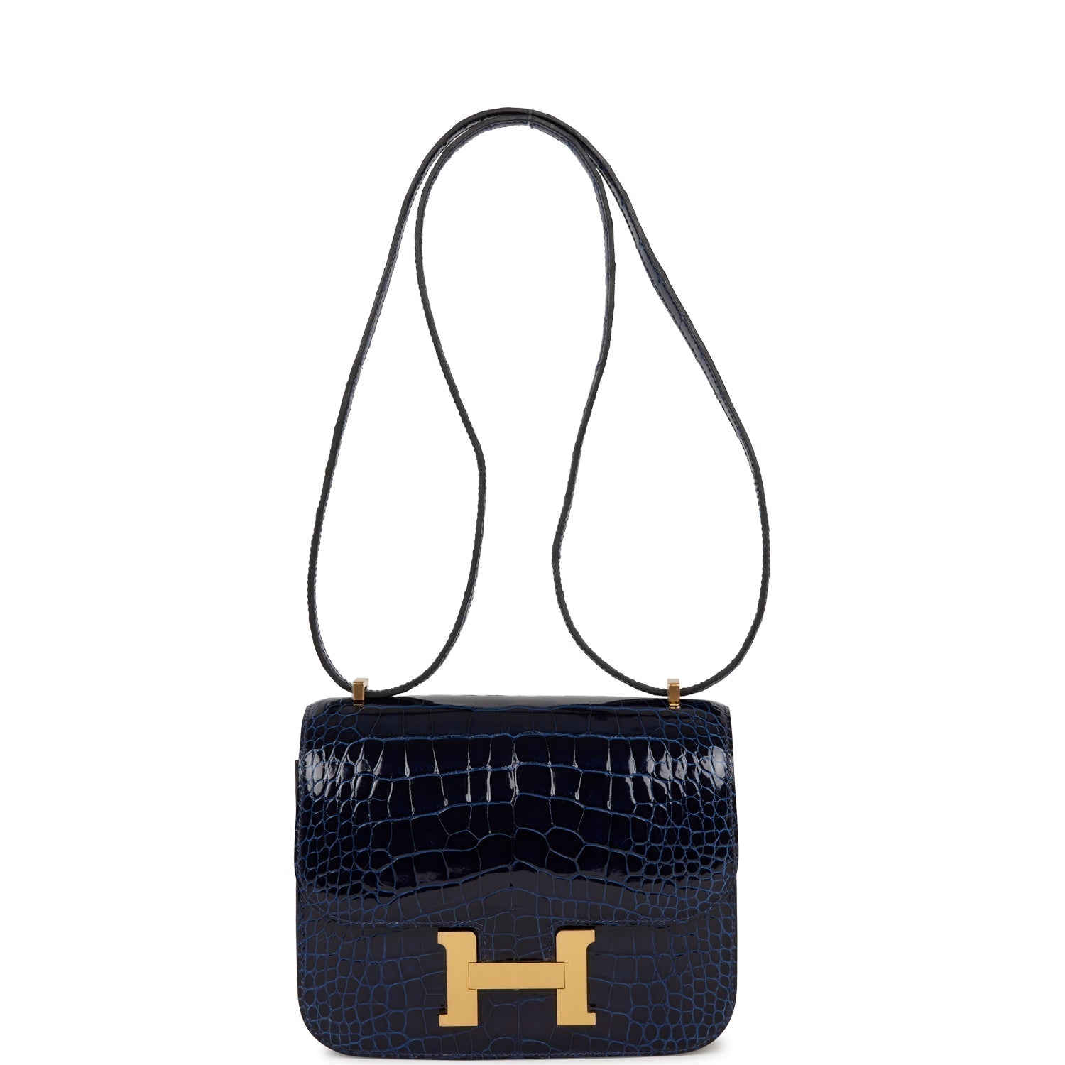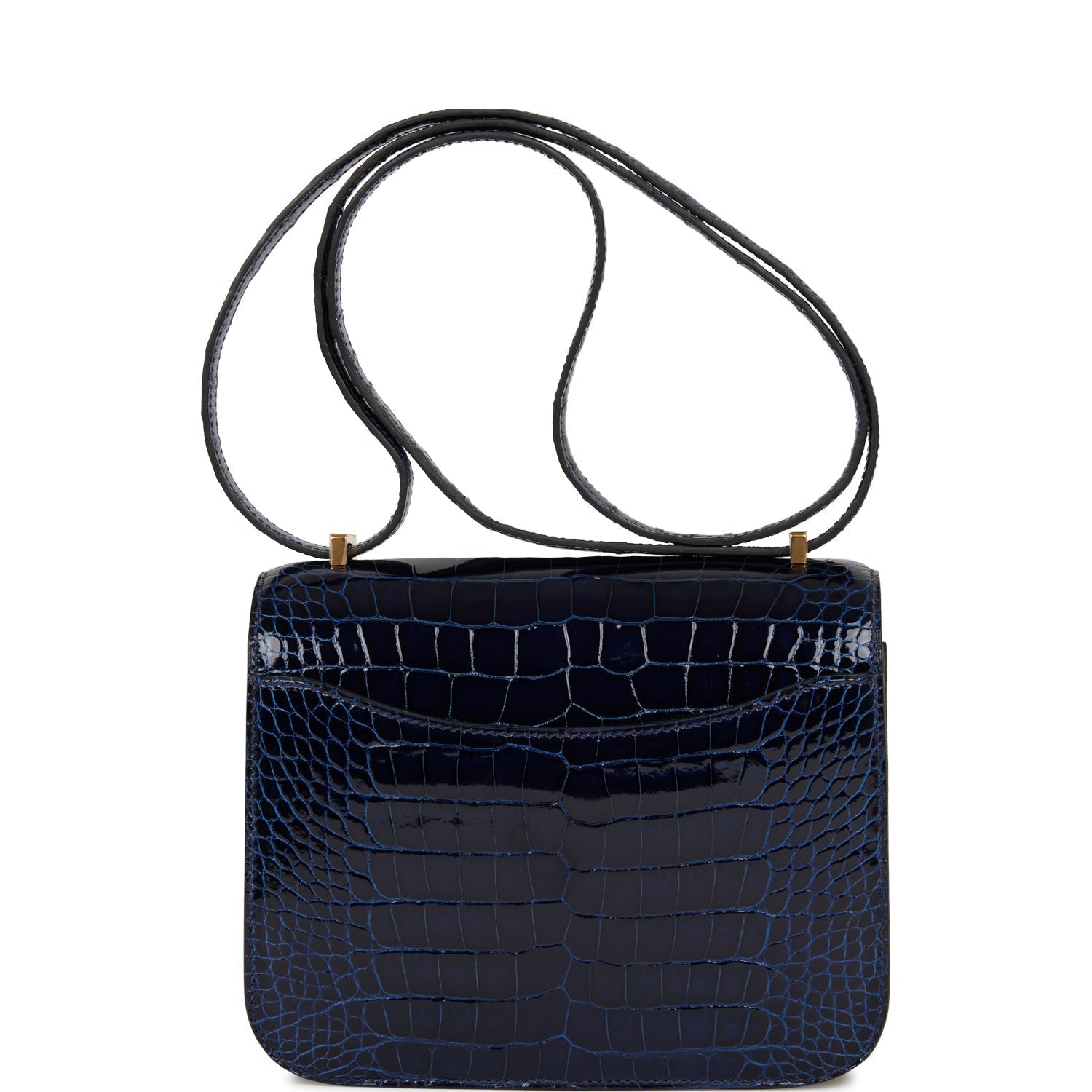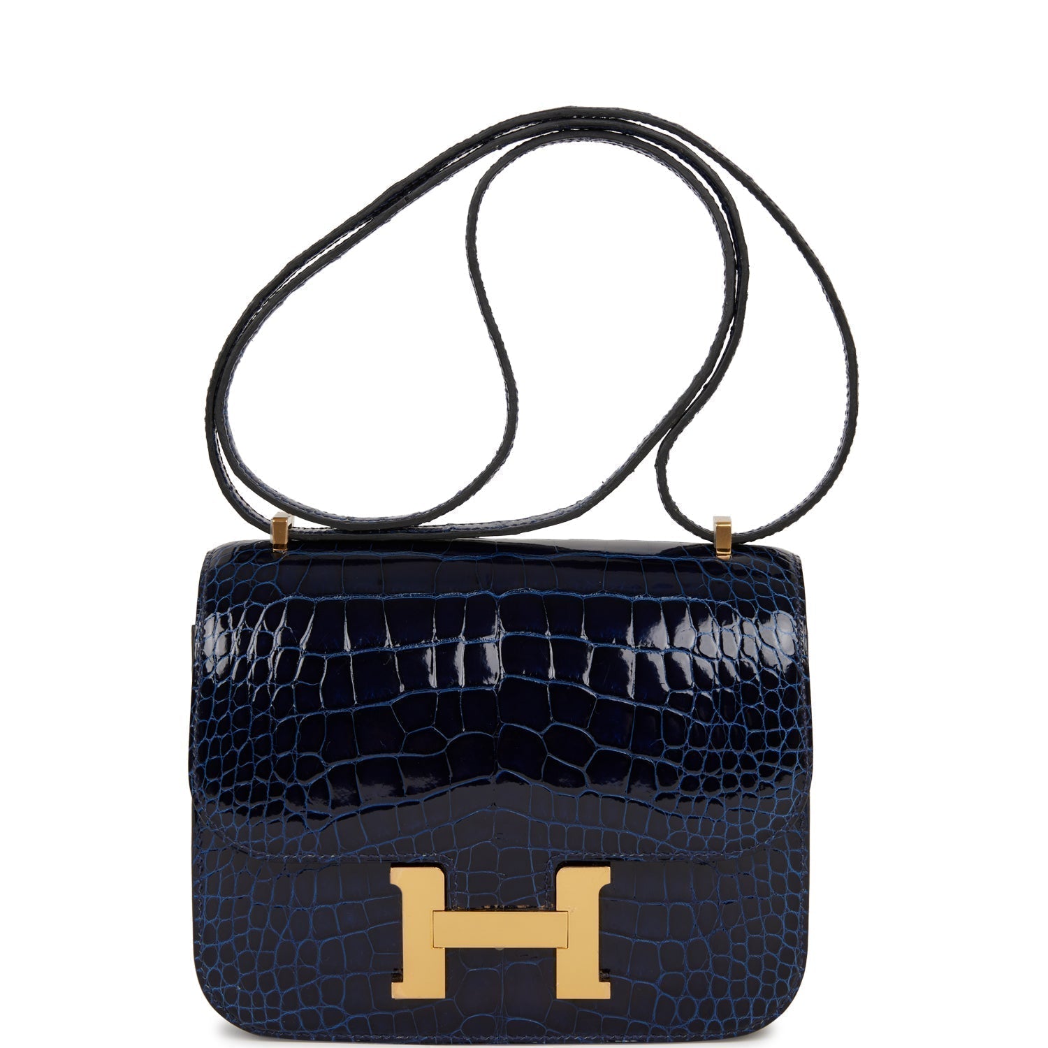 Hermes Constance 18 Bleu Saphir Shiny Alligator Gold Hardware