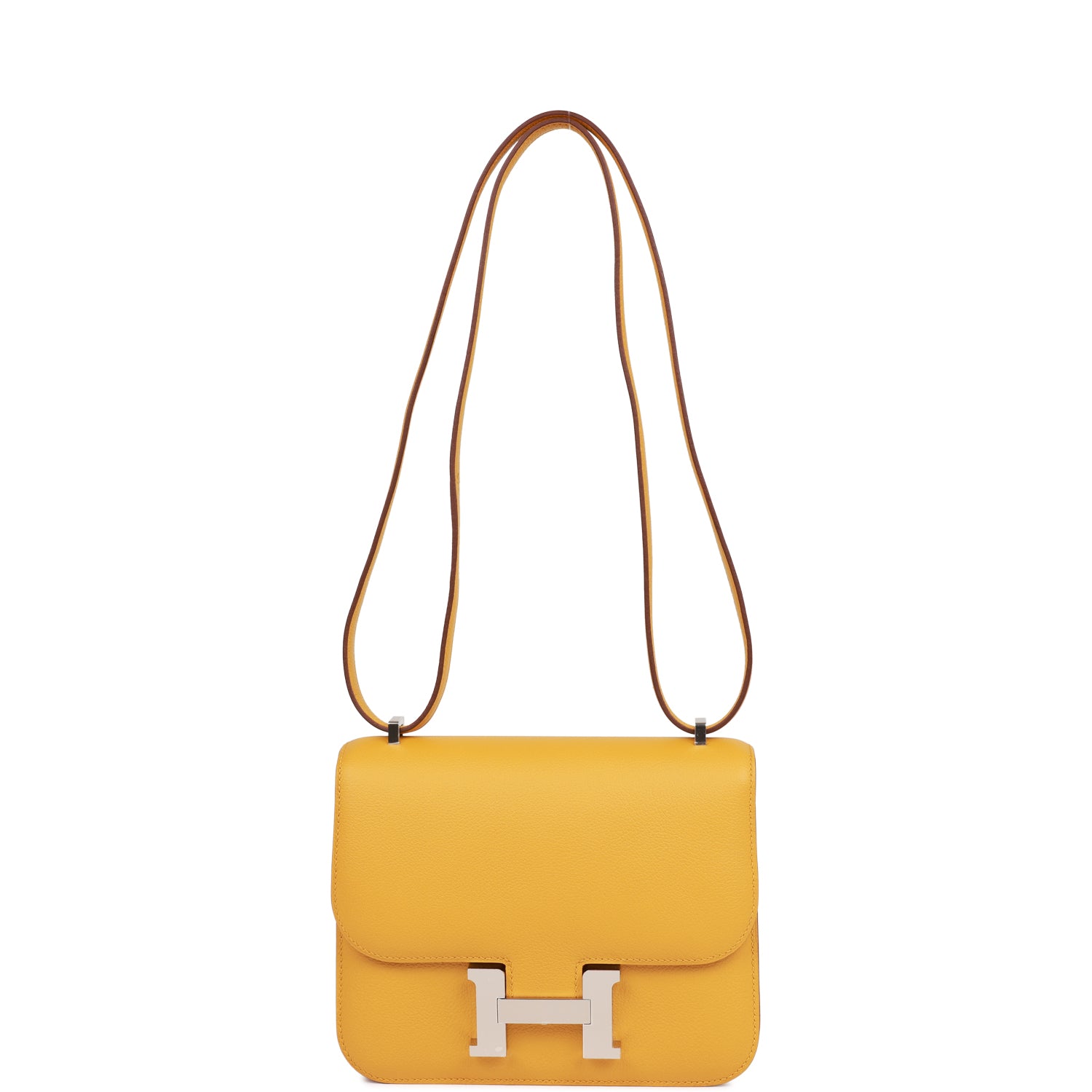 Hermes Constance 18 Jaune Ambre Verso Evercolor Palladium Hardware