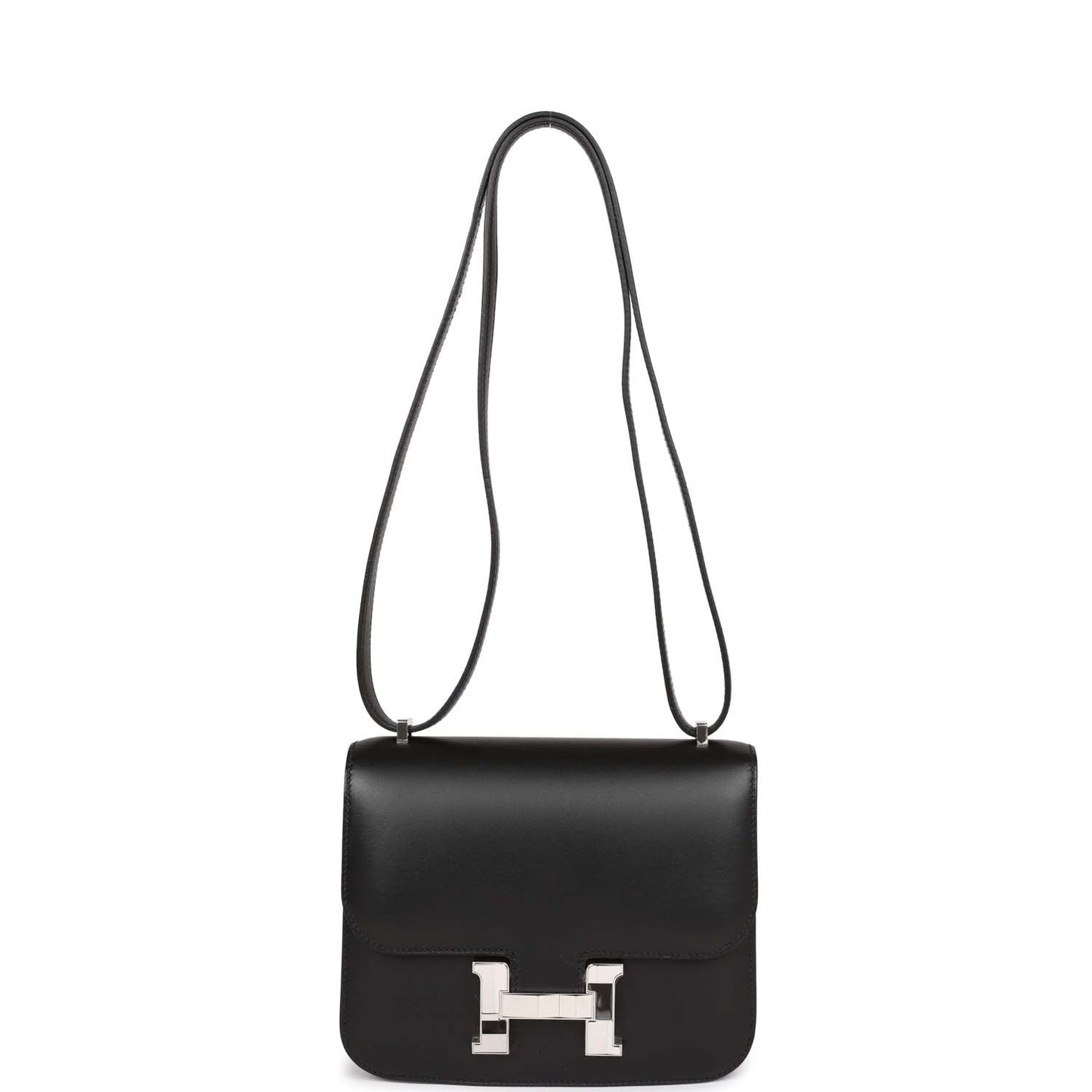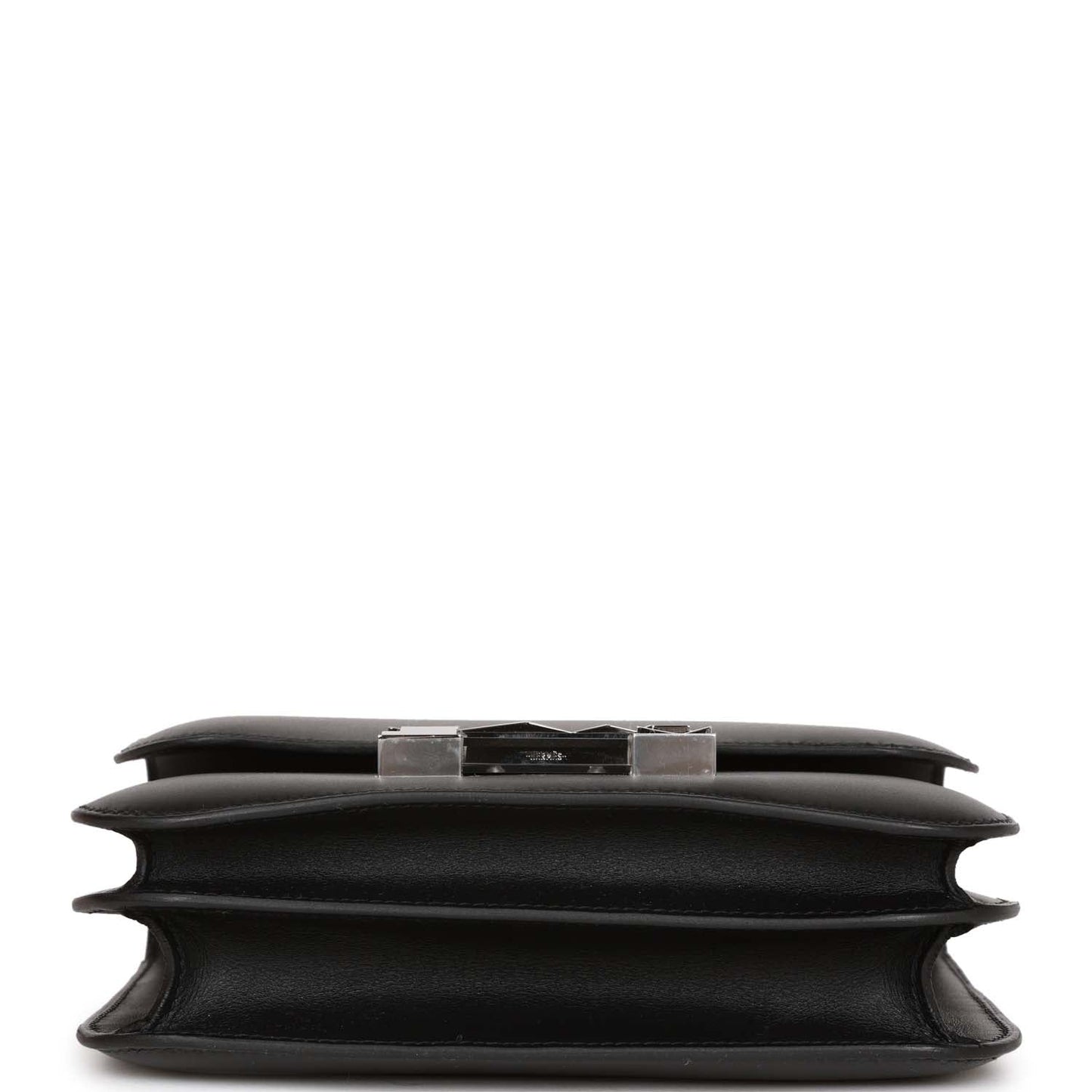 This Constance 18cm is in Studio Disco Black swift leather with palladium hardware and has tonal stitching, a metal "H" snap lock closure and adjustable shoulder strap.