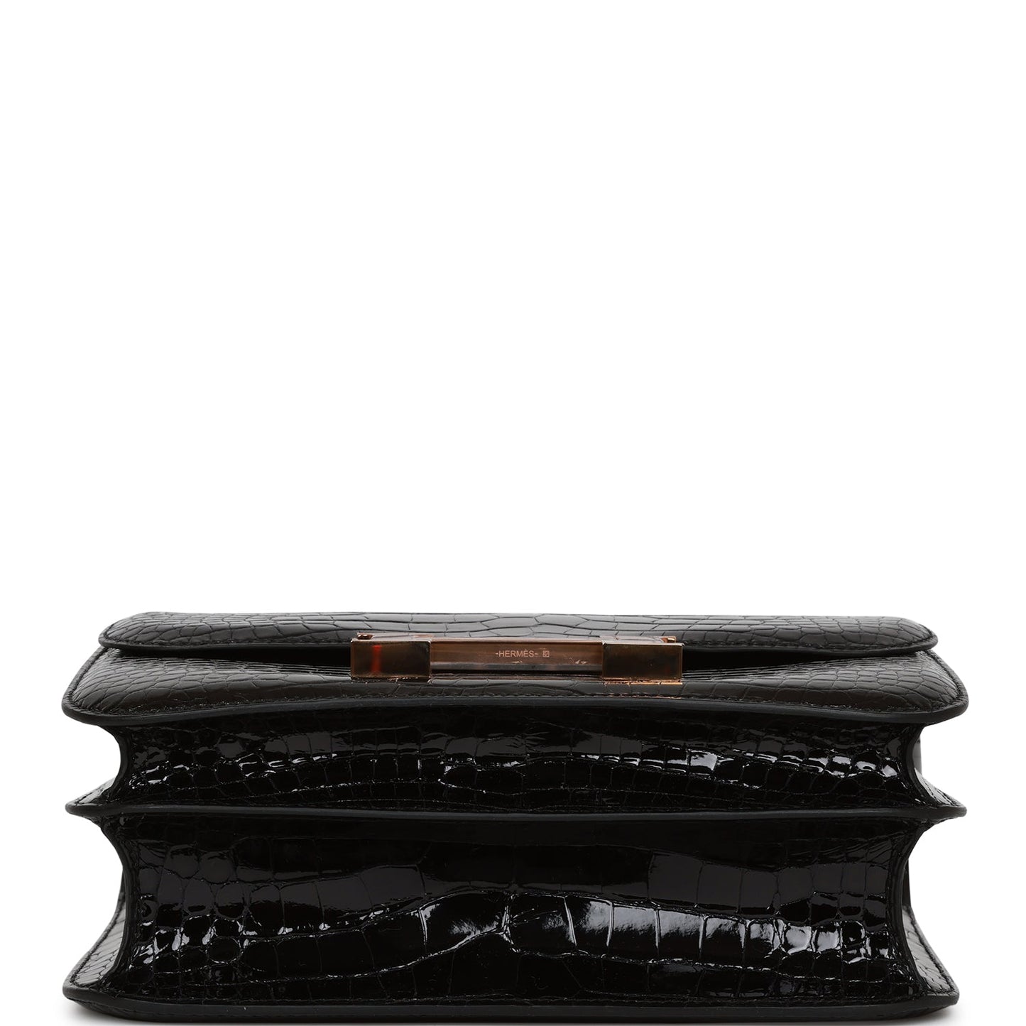 Hermes Constance 24 Black Shiny Alligator Rose Gold Hardware