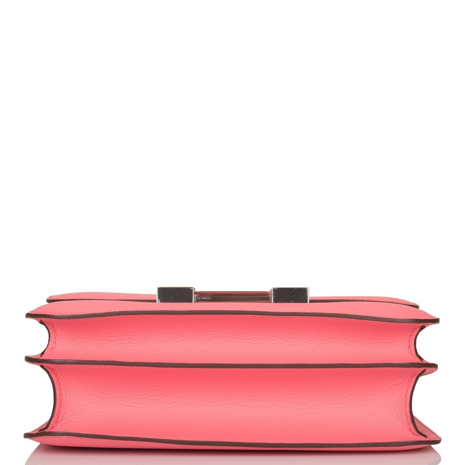 This Constance is in Rose D'Ete evercolor leather with palladium hardware and has tonal stitching, a metal "H" snap lock closure, and adjustable shoulder strap.