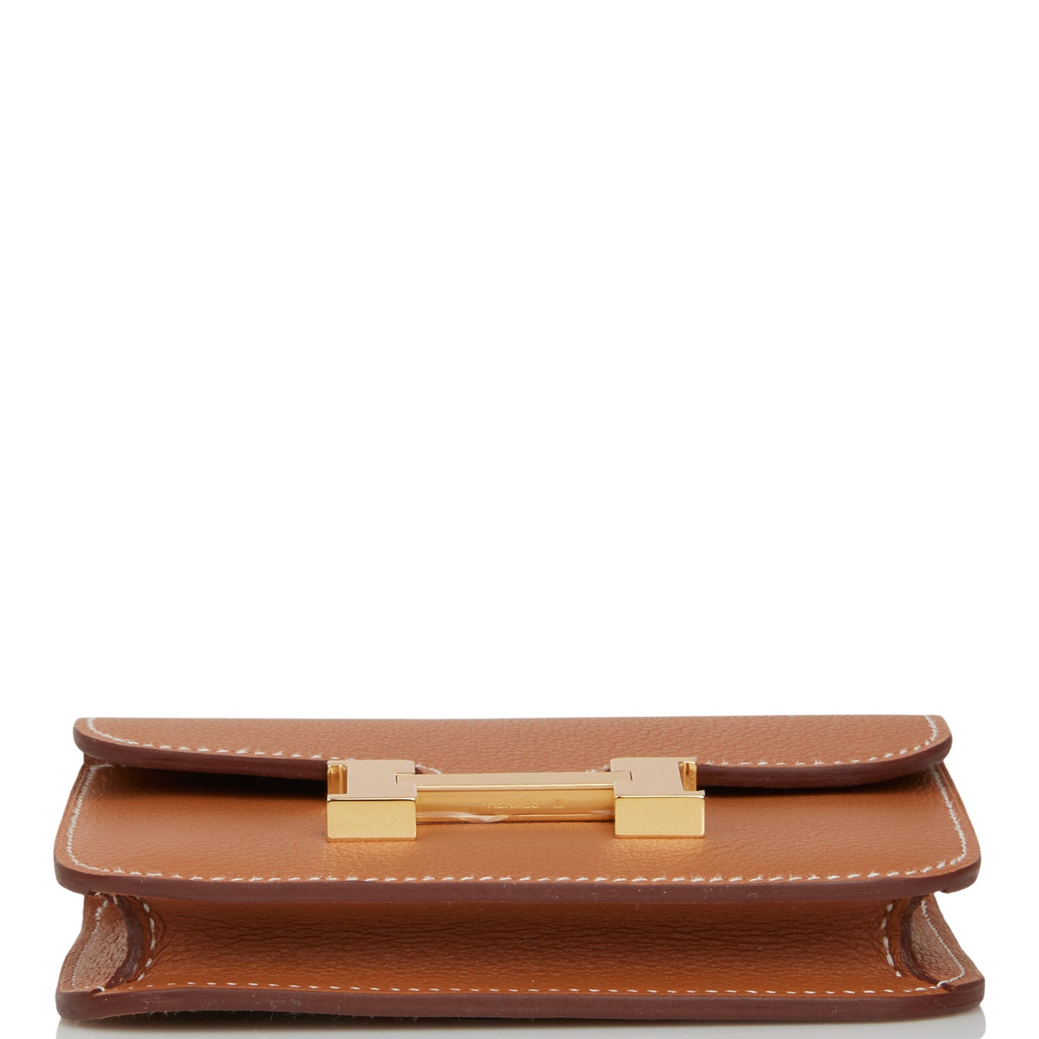 Hermes Constance Slim Wallet Gold Evercolor Gold Hardware
