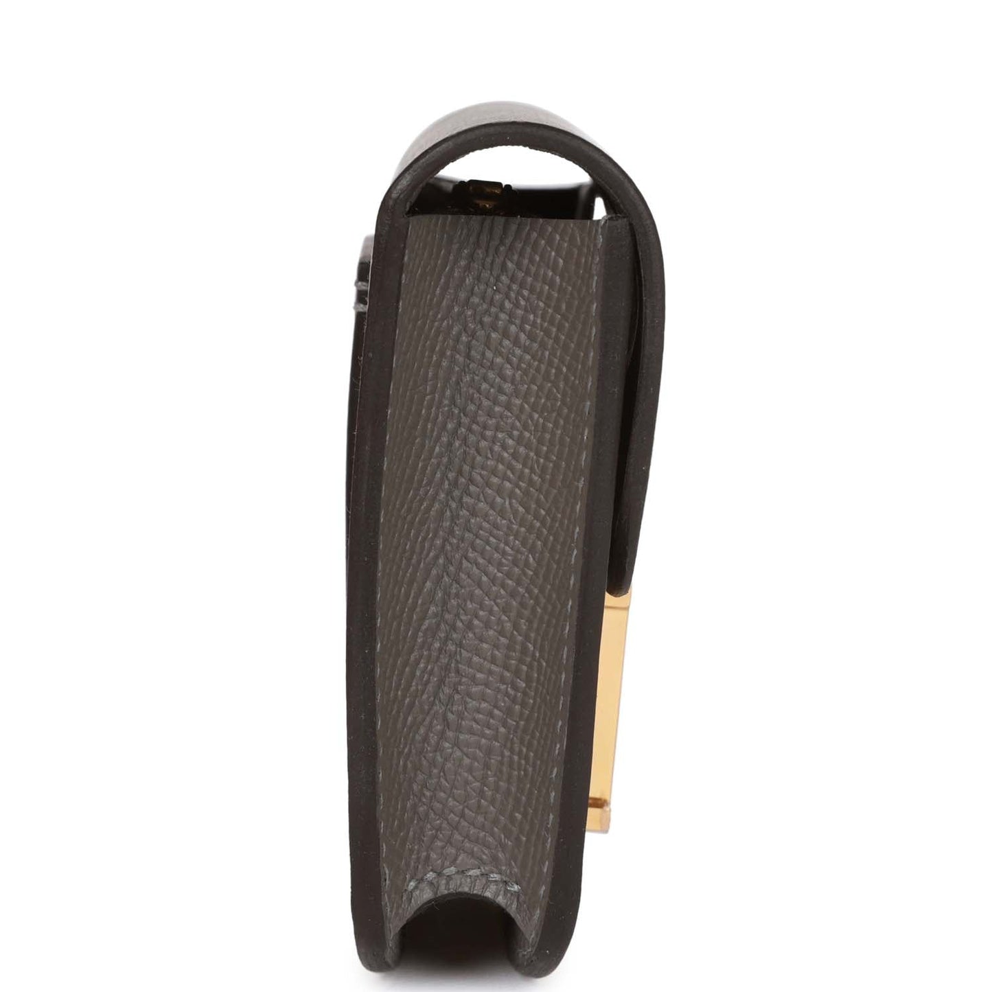 This Constance Slim Wallet is in Gris Meyer epsom leather with gold hardware and has tonal stitching, rear belt loop, front flap and removable coin pouch.