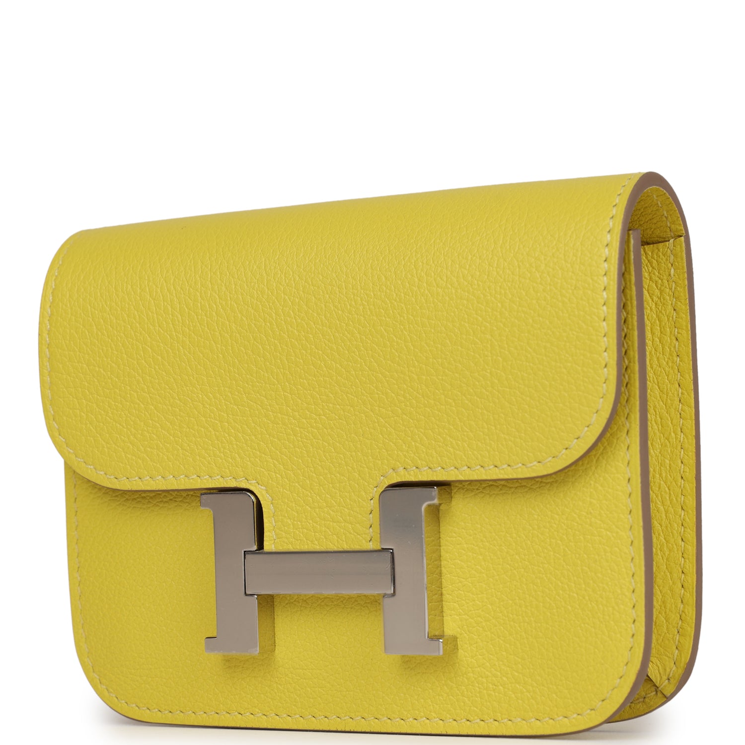Hermes Constance Slim Wallet Lime Evercolor Palladium Hardware