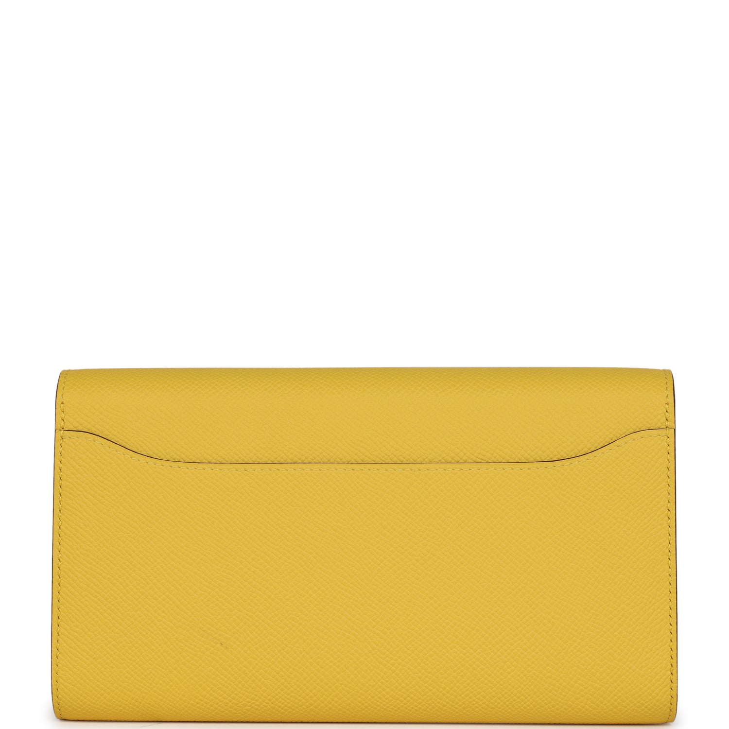 This Constance Wallet To Go is in Jaune De Naples epsom leather with gold hardware and has tonal stitching, metal "H" snap lock closure, open front compartment and removable crossbody strap.
