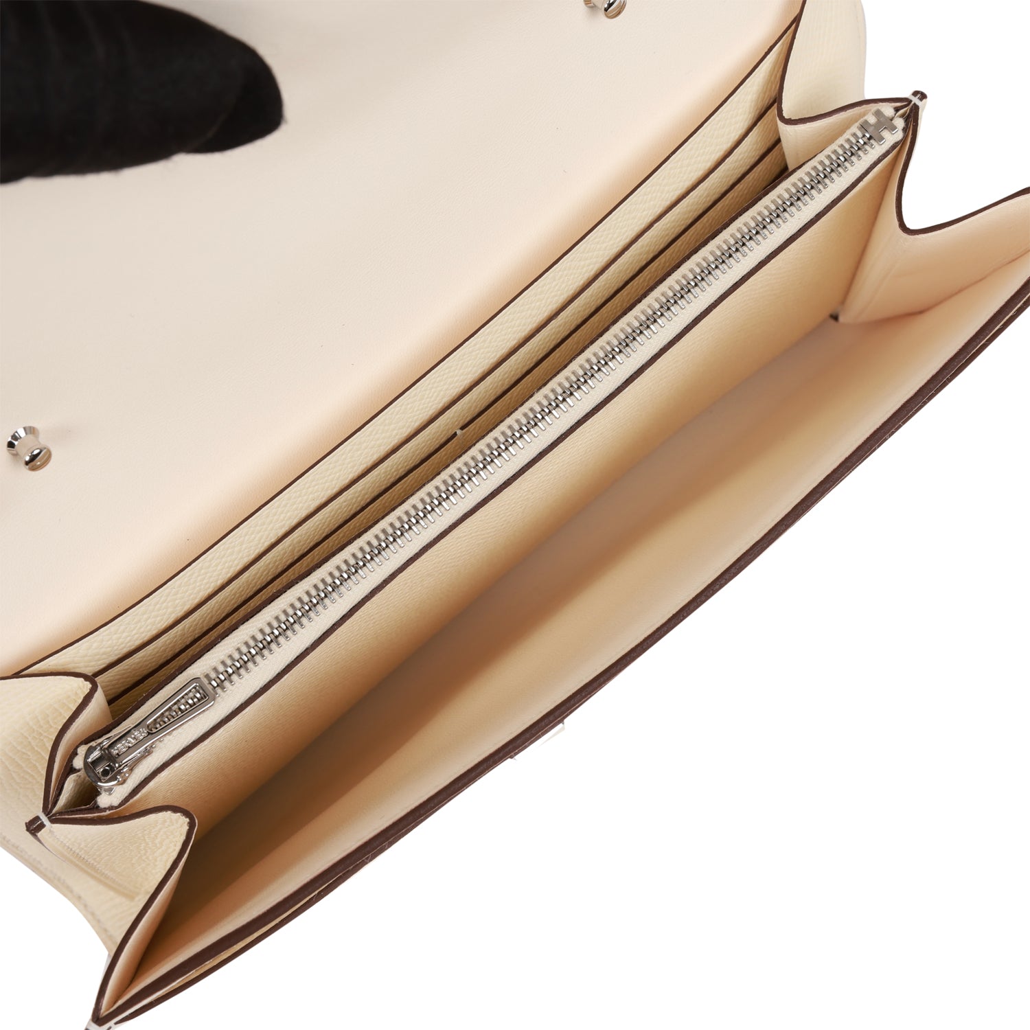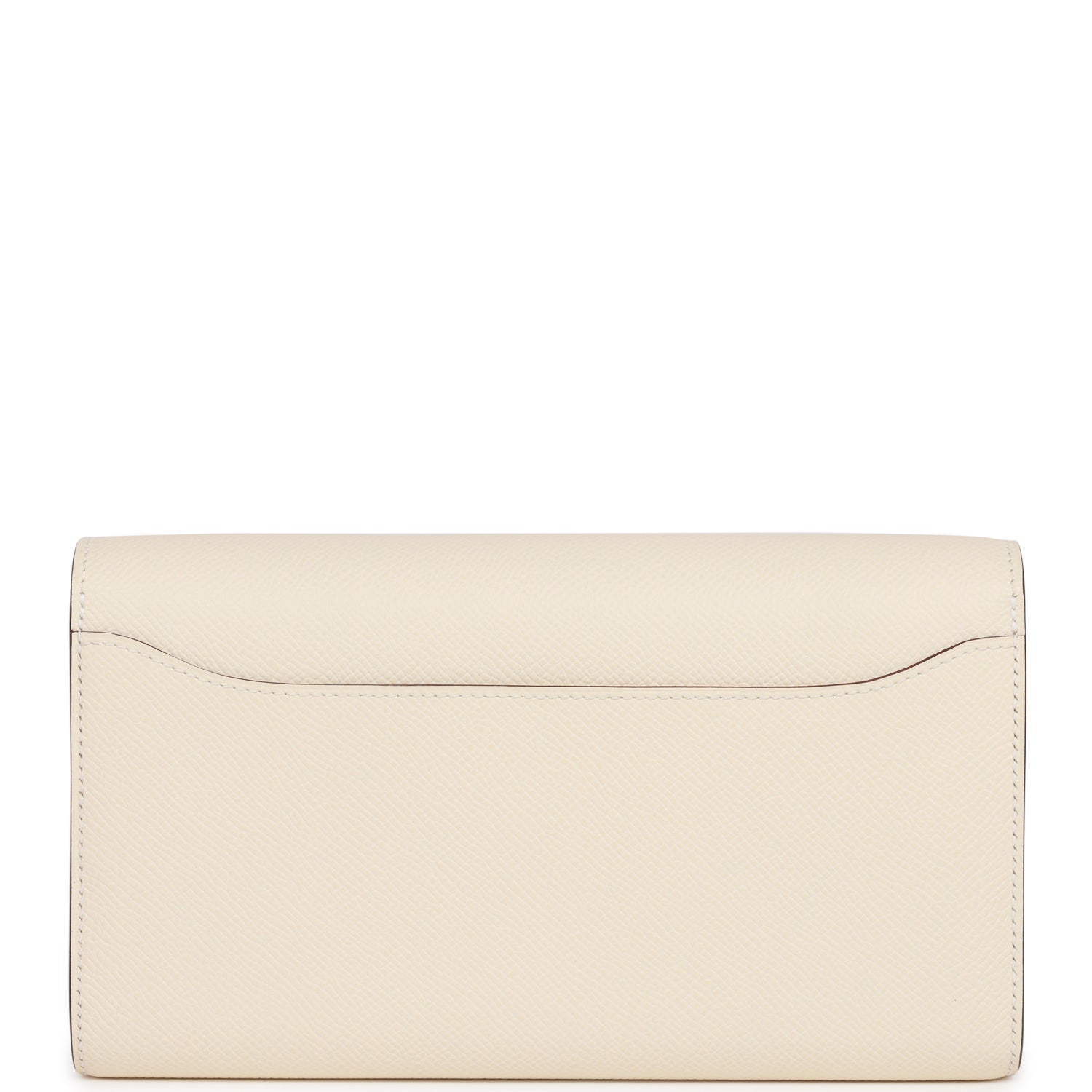 This Constance Wallet To Go is in Nata epsom leather with palladium hardware and has tonal stitching, Lizard "H" snap lock closure, open front compartment and removable crossbody strap.