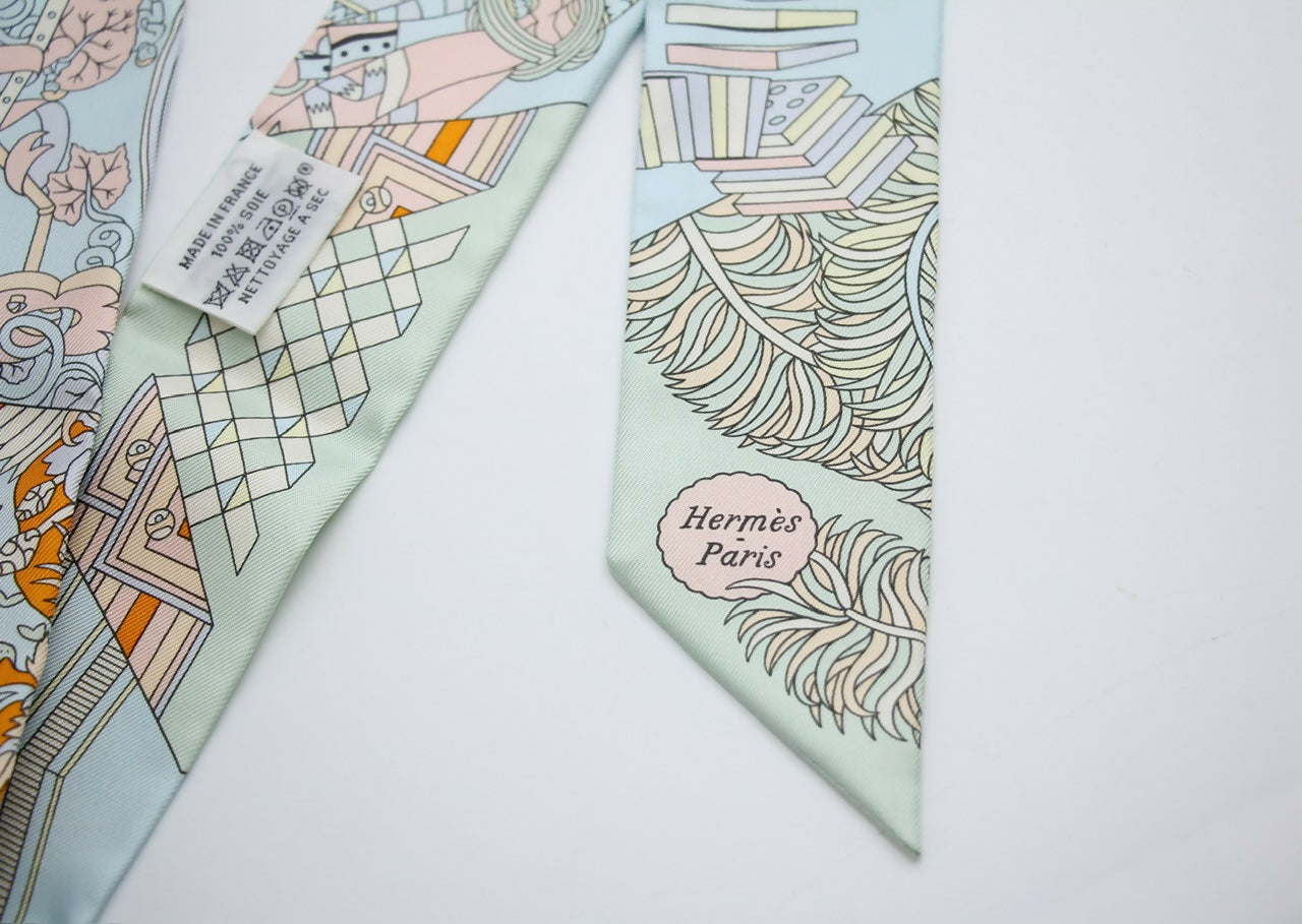 Hermes De l'Ombrelle aux Silk Twilly Pale Pink Sky Orange