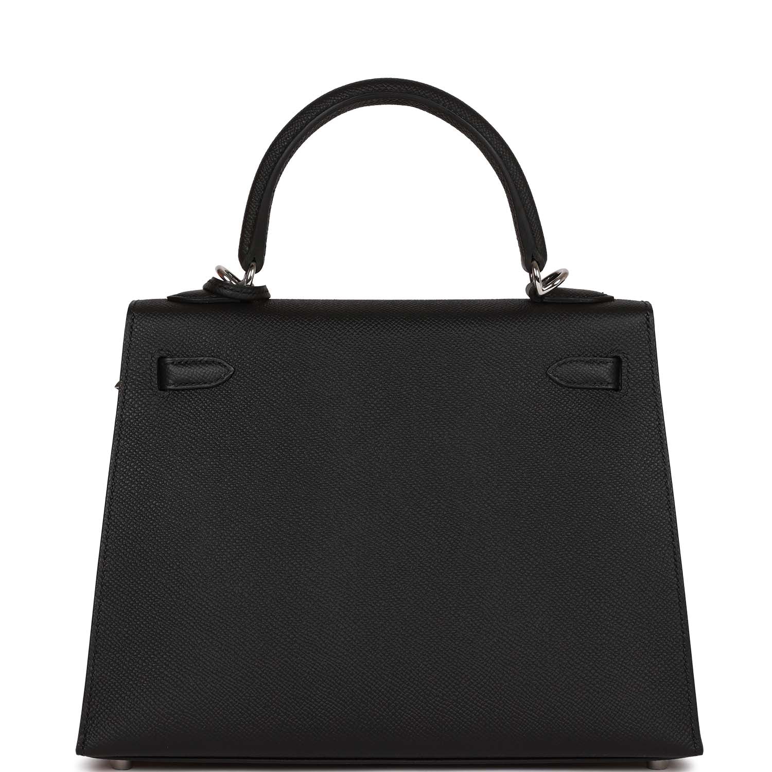 Hermes Kelly 25 Sellier Black Epsom Palladium Hardware